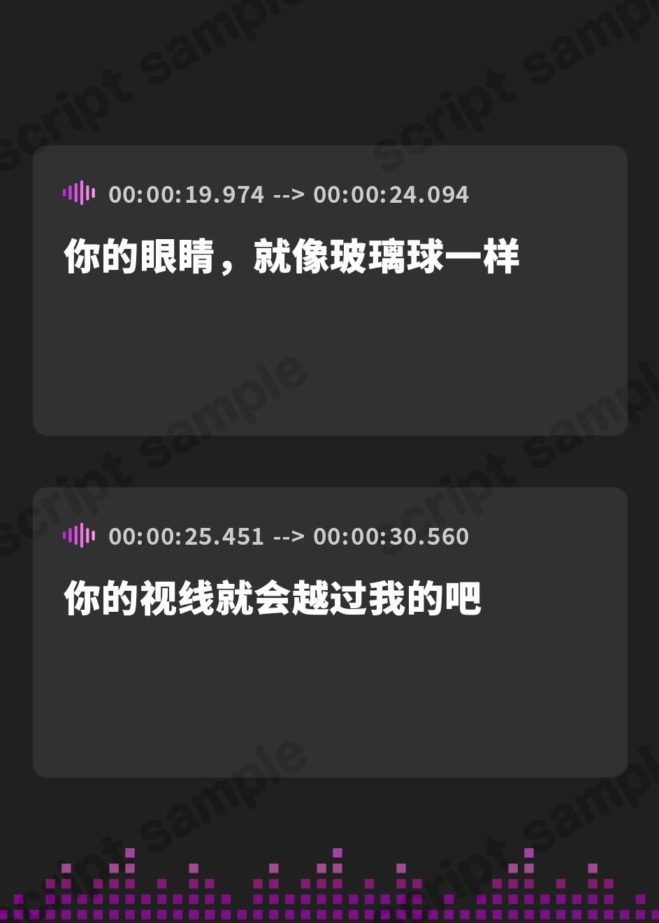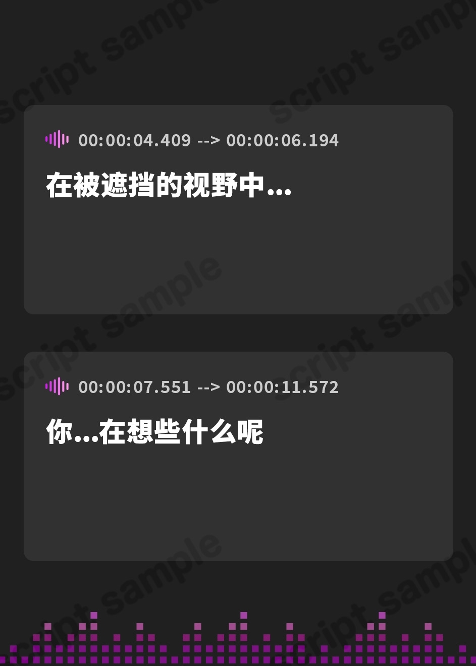 ・【状況】を台詞で表現する事が出来ませんので、聴き手様の想像力が必要かもしれません。