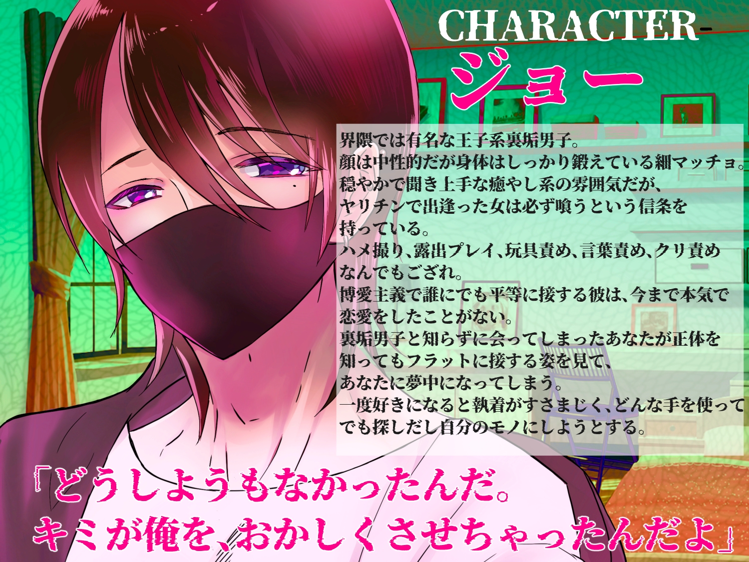 失意のあなたはマッチングアプリで知り合った裏垢男子「ジョー」と飲みに行き、流されるままにラブホテルでセックスすることに。