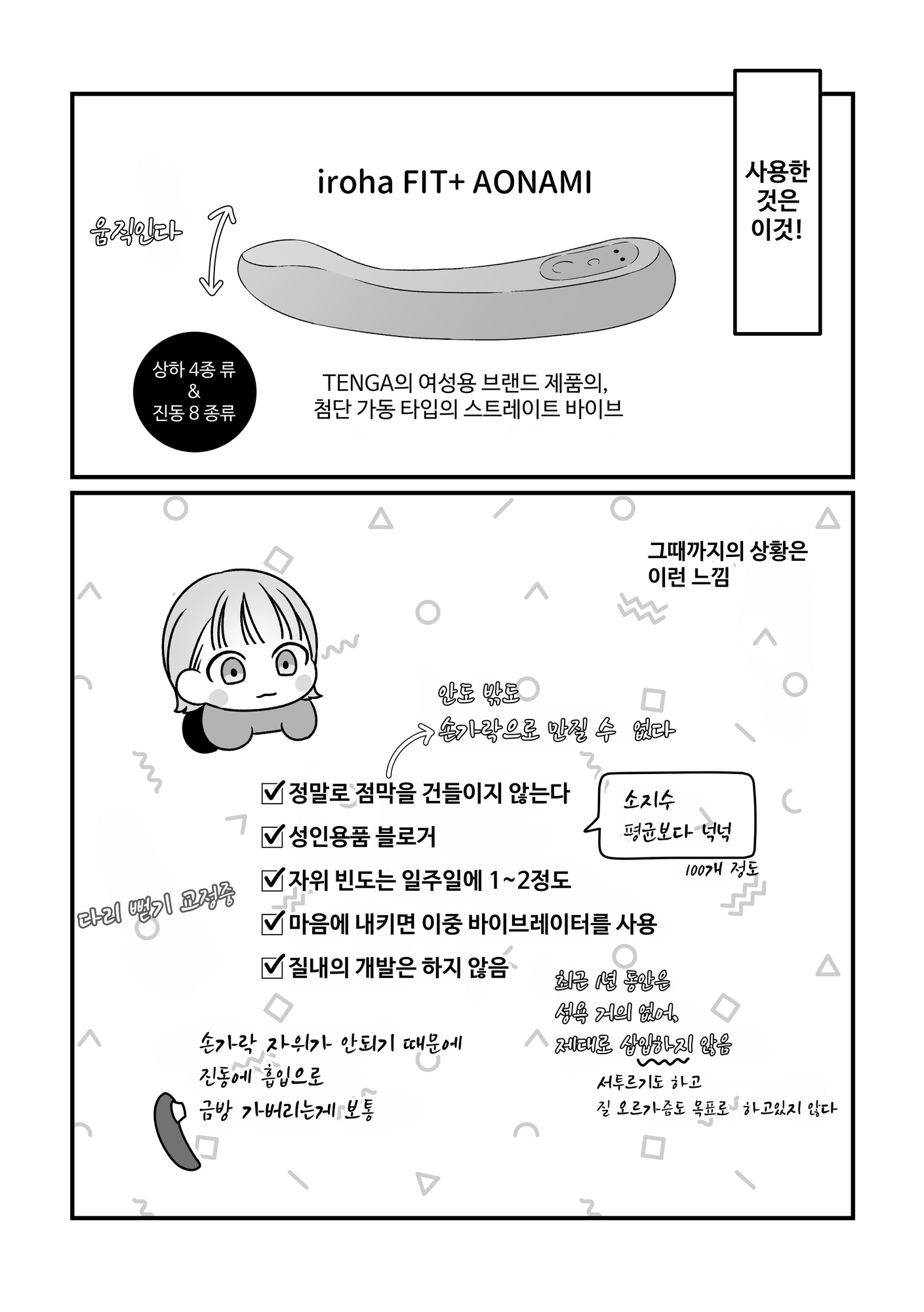 きっかけとなったラブグッズ・i○oha FIT+ A○NAMIの紹介とともに、中イキの流れやコツをエッセイ漫画にまとめました。