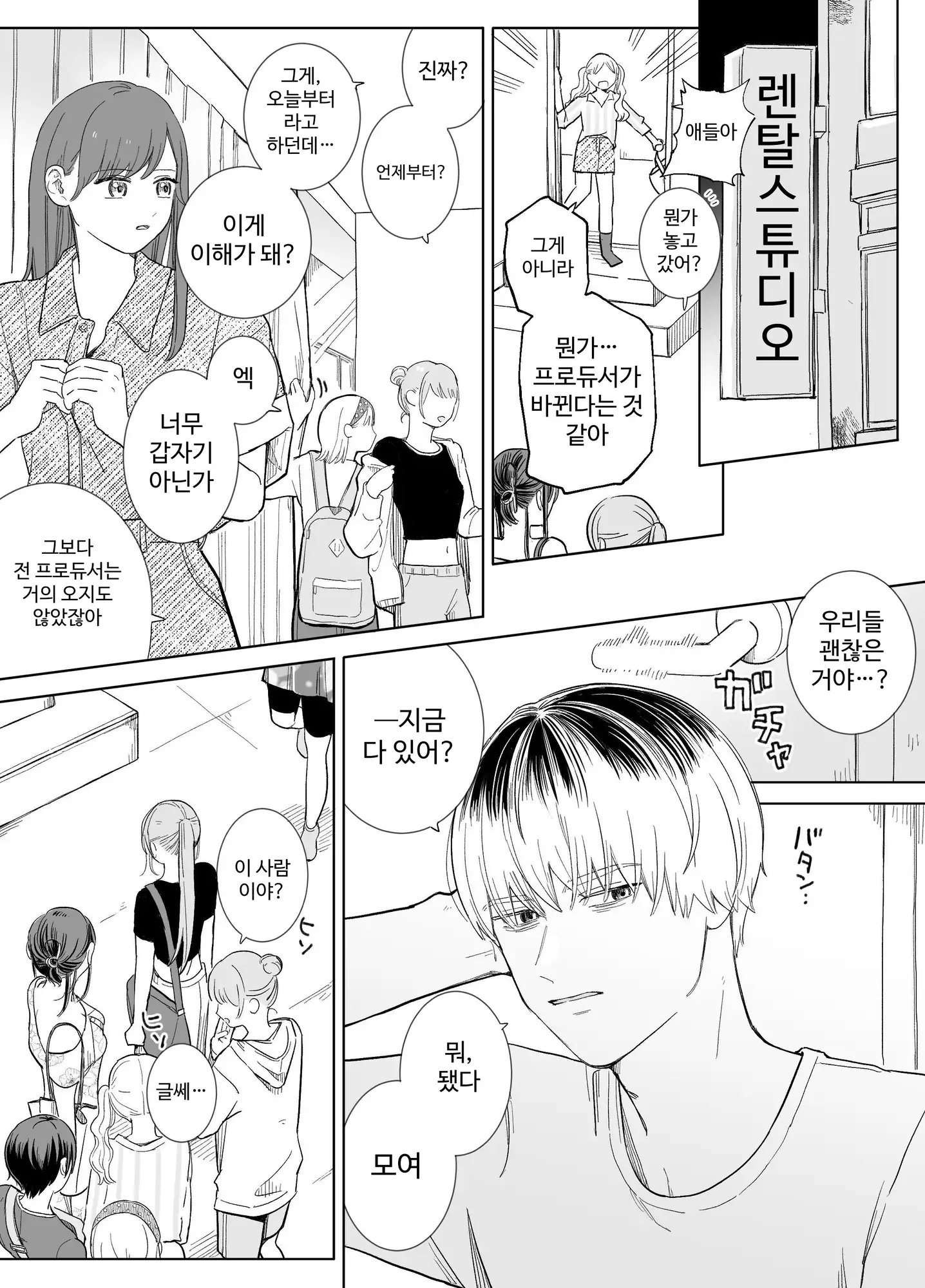 地下アイドルとして練習を頑張る主人公と、高圧的な新しいプロデューサーの男。
