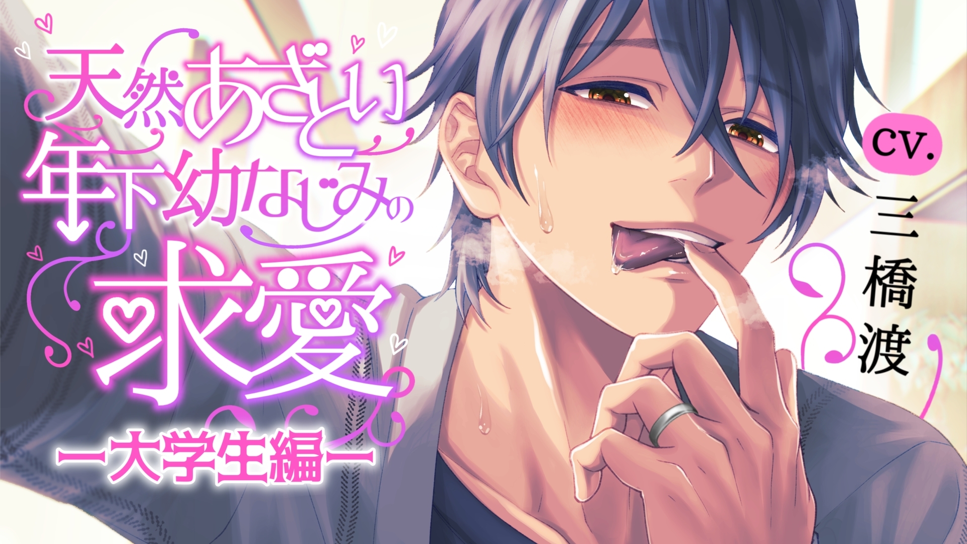 家がお隣同士の“あなた”と琉斗は両片想い中の幼なじみ。ある日仕事が終わって家に帰ると、落ち込んだ様子の琉斗の姿が。優しく声を掛けた“あなた”は、ジリジリと壁際に追い詰められて肘ドンされてしまう。突然のことに戸惑いながらも琉斗のおねだりを拒めず心も身体も愛されていく……。【溺愛×キス×耳舐め】シリーズ1作目。愛情たっぷりにキスされて耳元で意地悪に愛を囁かれながら溺愛えっちされる甘々シチュエーション。CV.三橋渡