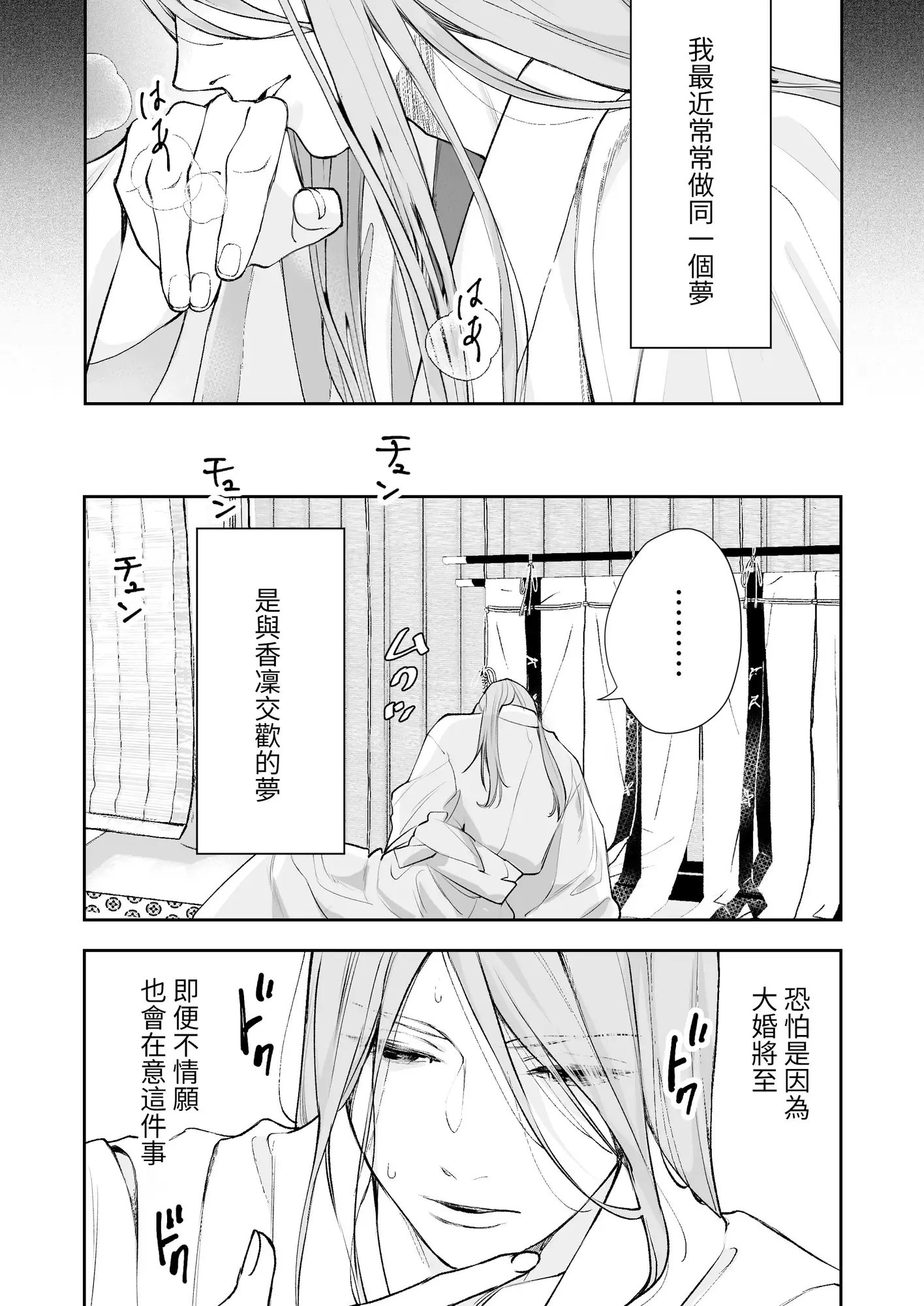 카린과 코하쿠의 혼례가 끝나면, 아사기리는 두 사람의 침실에 "지도 역"으로서 동행하게 된다.