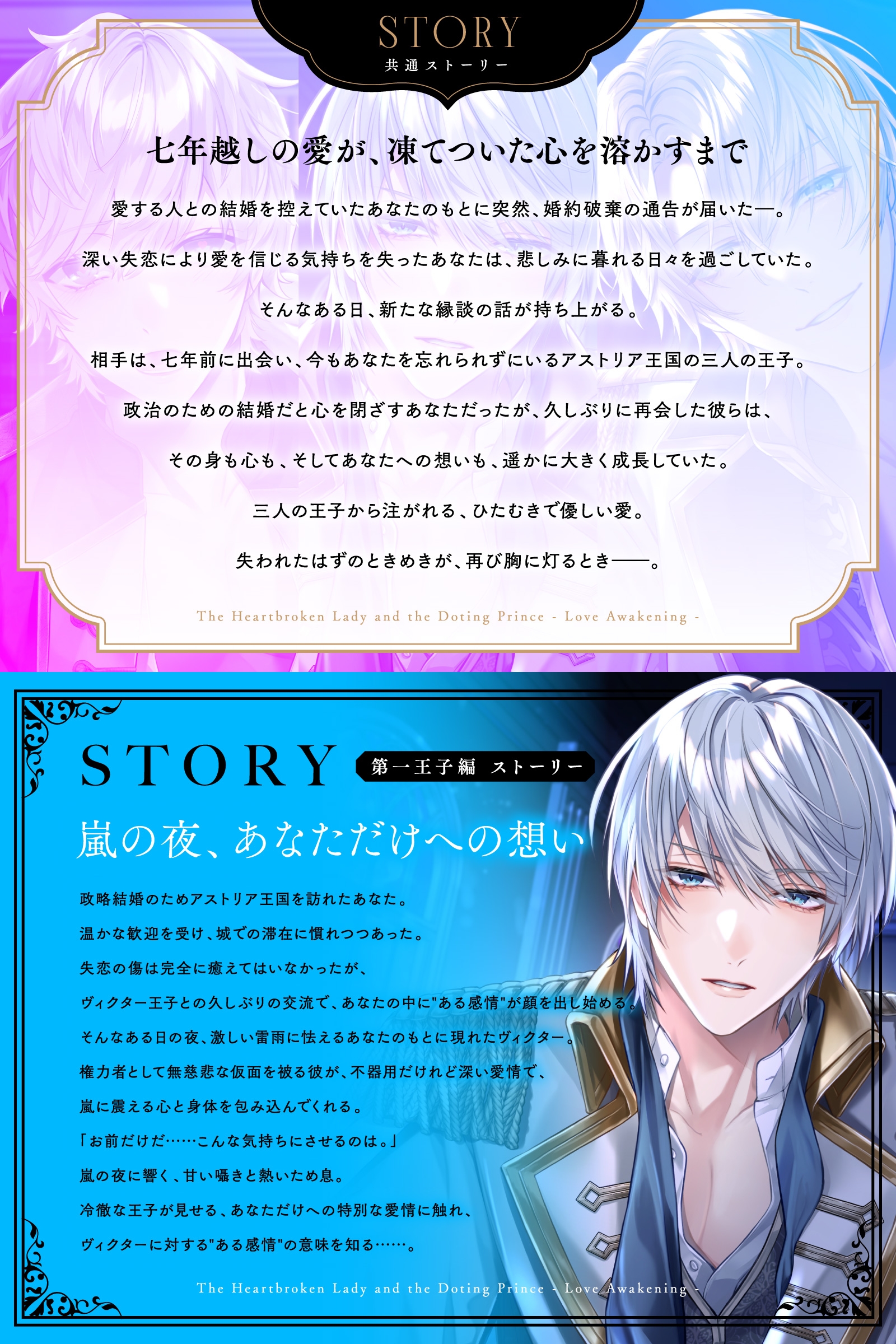 恋心を寄せていたセレスティア王国の王子との婚約は破棄。悲しみに暮れる日々を過ごしていたが、今回の政略結婚で久しぶりにアストリア王国の3人の王子と再会する。懐かしさを覚えつつも、男性としても立派に成長した彼らと交流していくうちに、ある感情が芽生え始める。