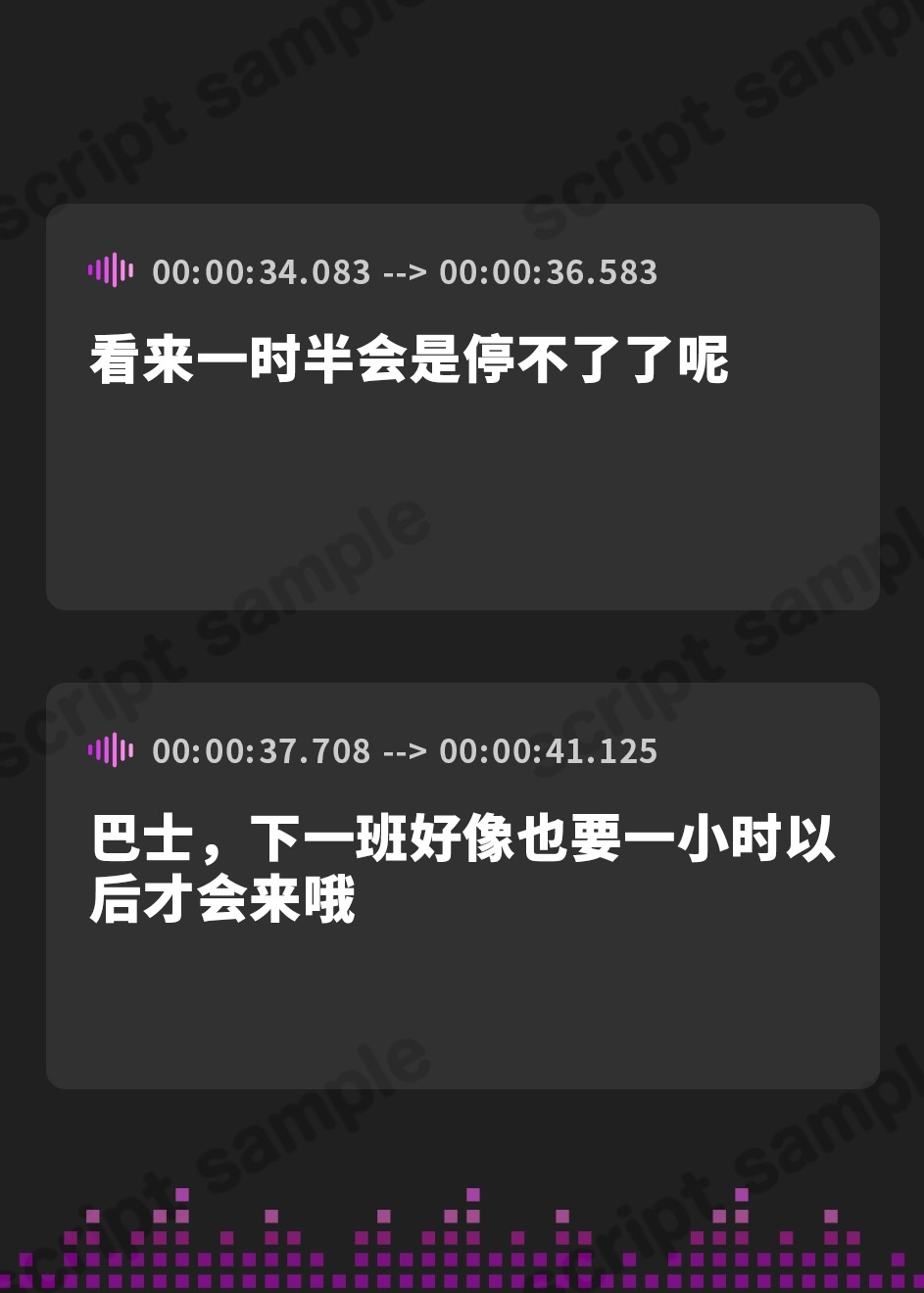 突然の夕立ちに見舞われ、ヒロインは近くのバス停に駆け込む。そこには同じく雨宿りに来た凪沙の姿があった。