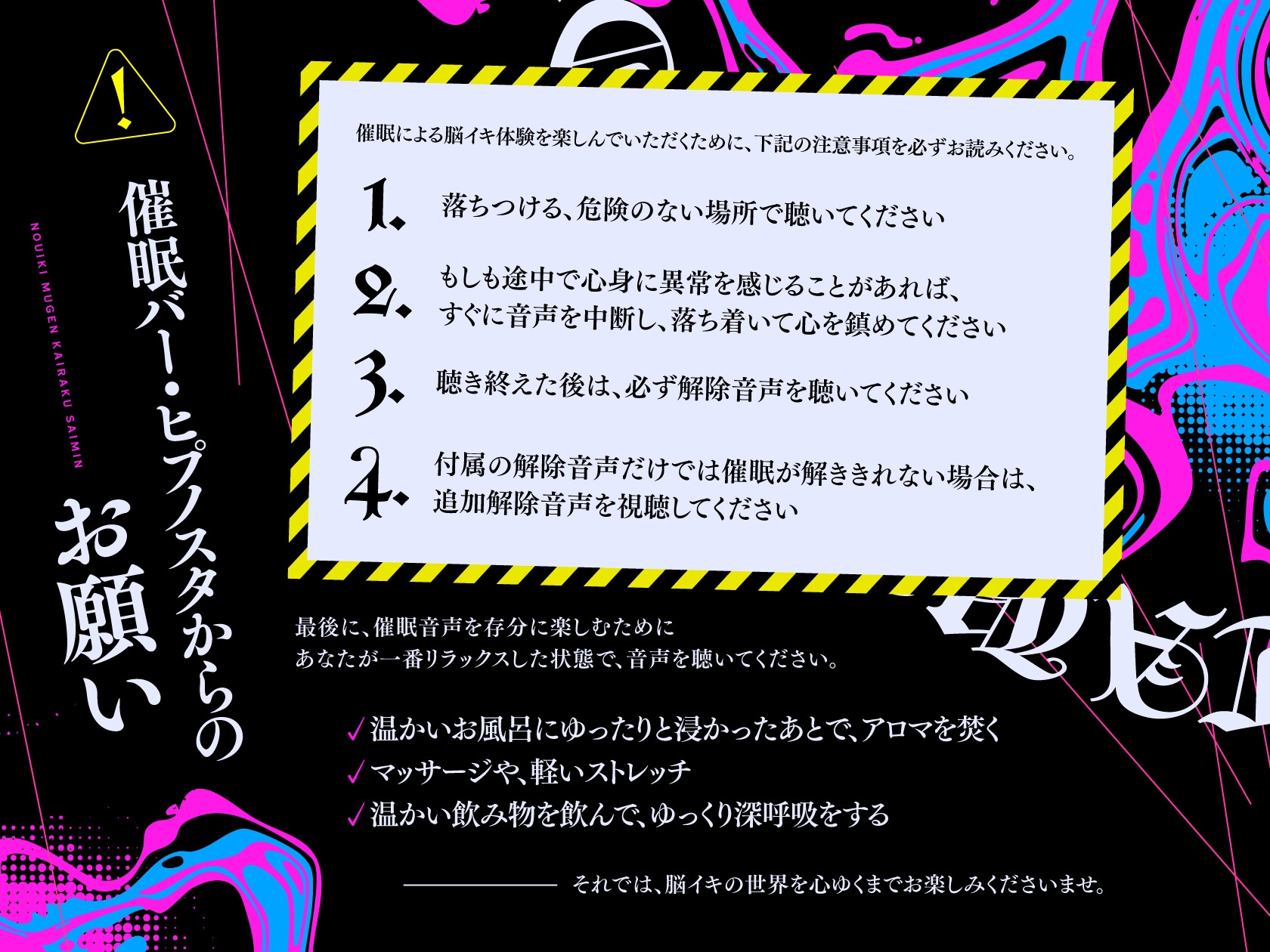 本編の催○をお楽しみいただいた後は、必ず解除音声をご視聴ください。