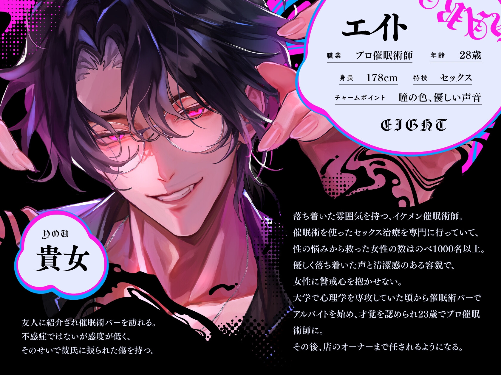 エイトが数を数えるたびに感度はあがり、指を鳴らすと絶頂する。