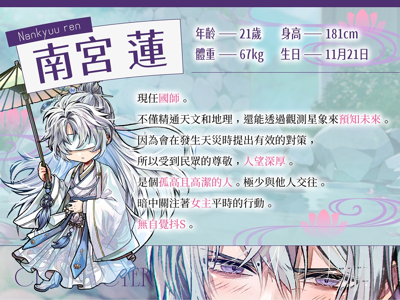 飾演 南宮 蓮:三橋渡 (@mitsuhashivoice)