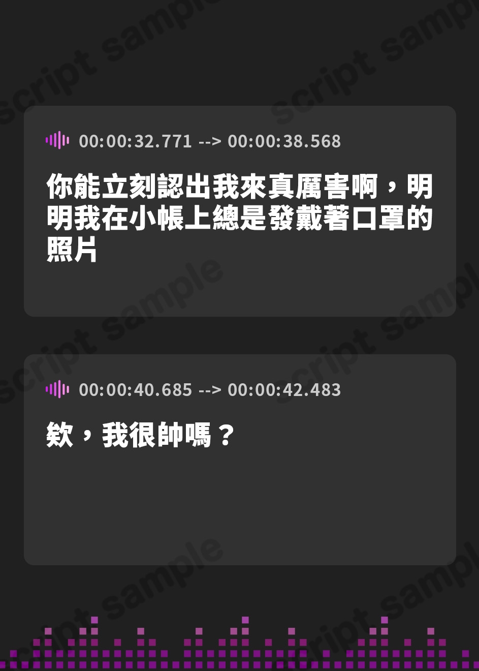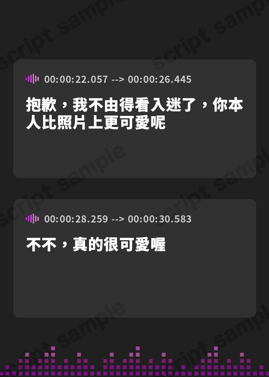 ・無断で台本を書きおこしてアップロードしたり、台本を他言語に翻訳して公開しないでください。