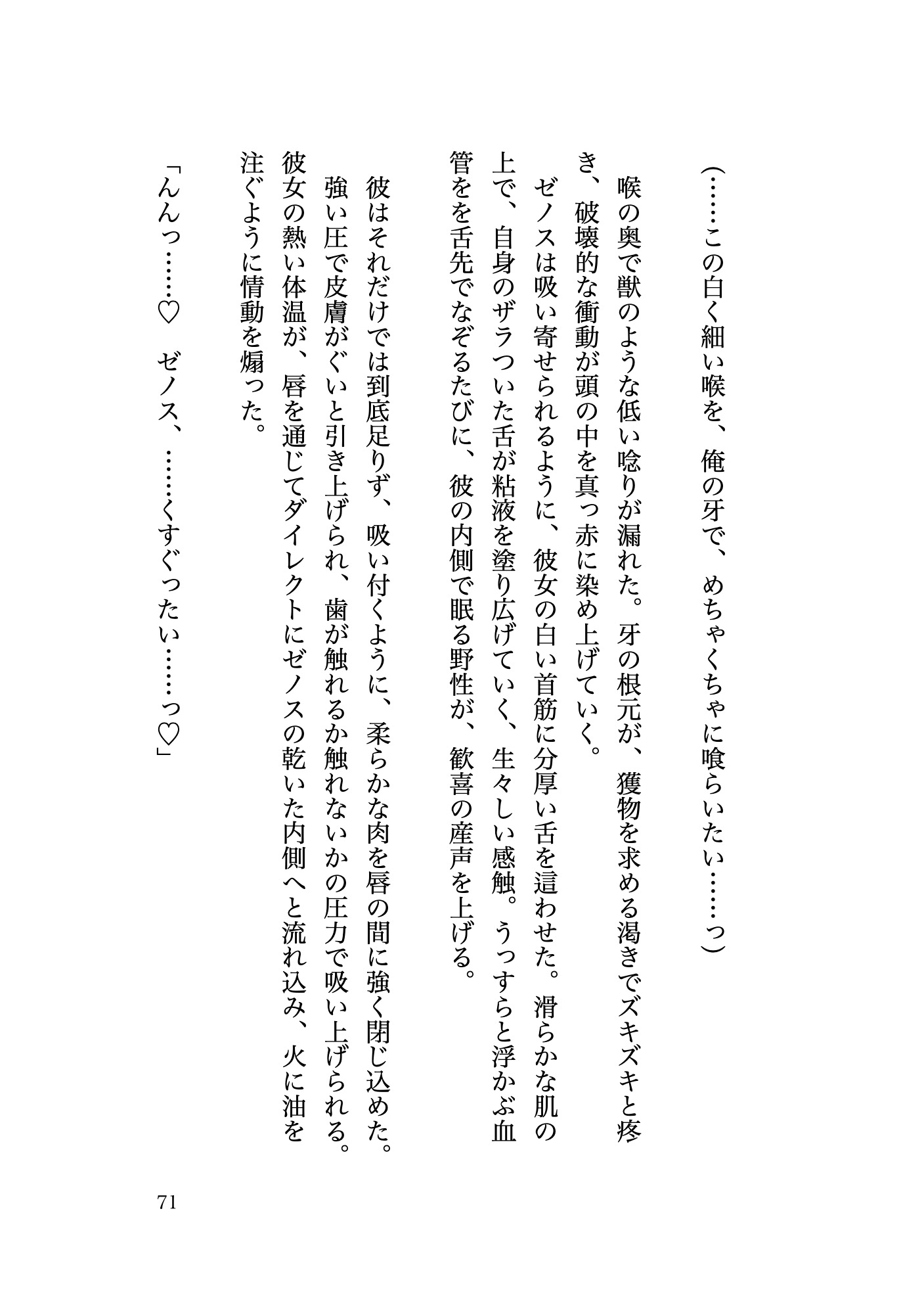 性に対する知識は本で読んだ程度だが、毒の副次的な効果によって発情し苦しんでいるゼノスに「治療」という名の調教を行う。