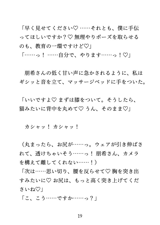 「思い切り、腰を反らせて♡ 胸を突き出すみたいに♡ お尻は、もっと高く突き上げてくださいね♡」