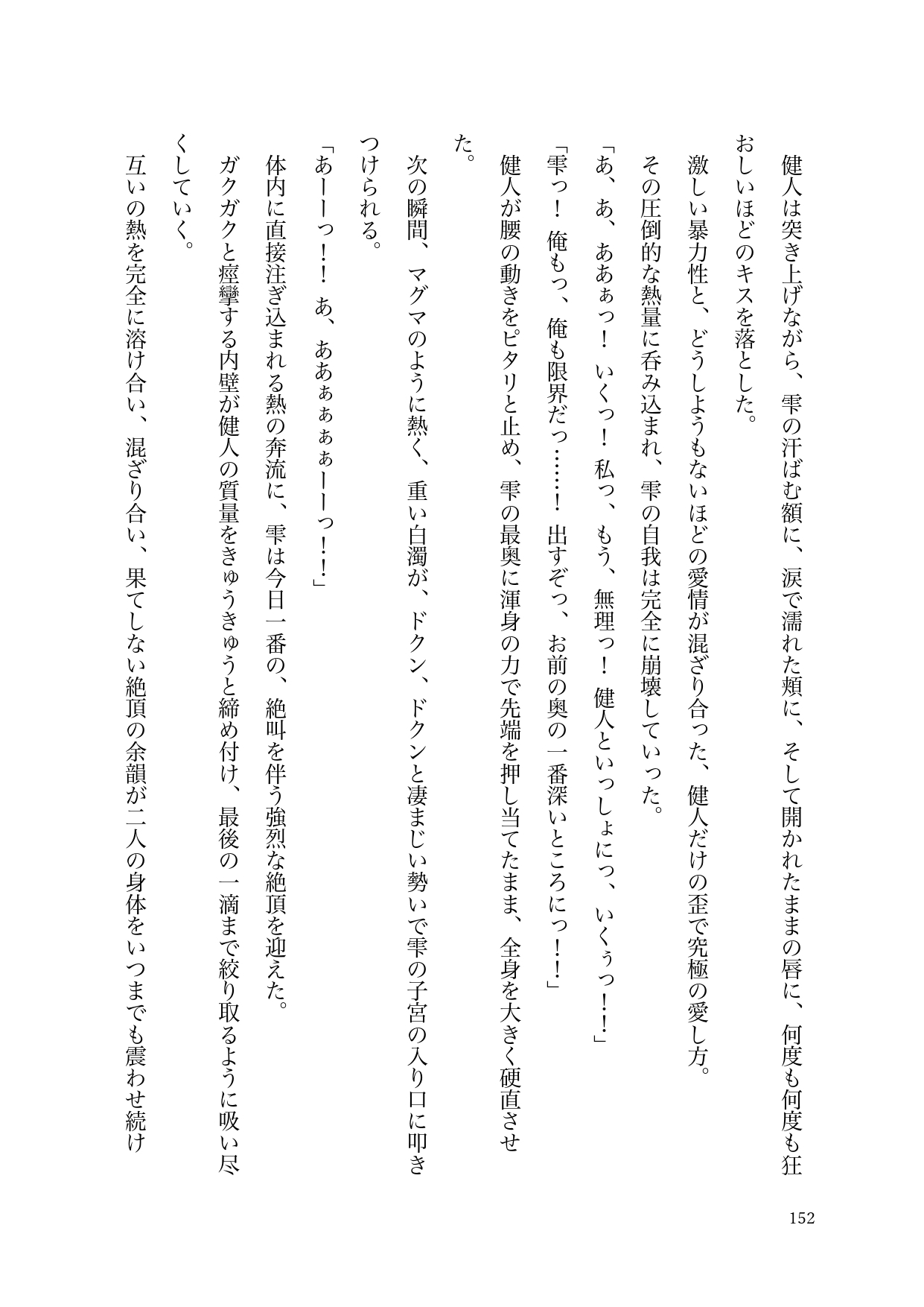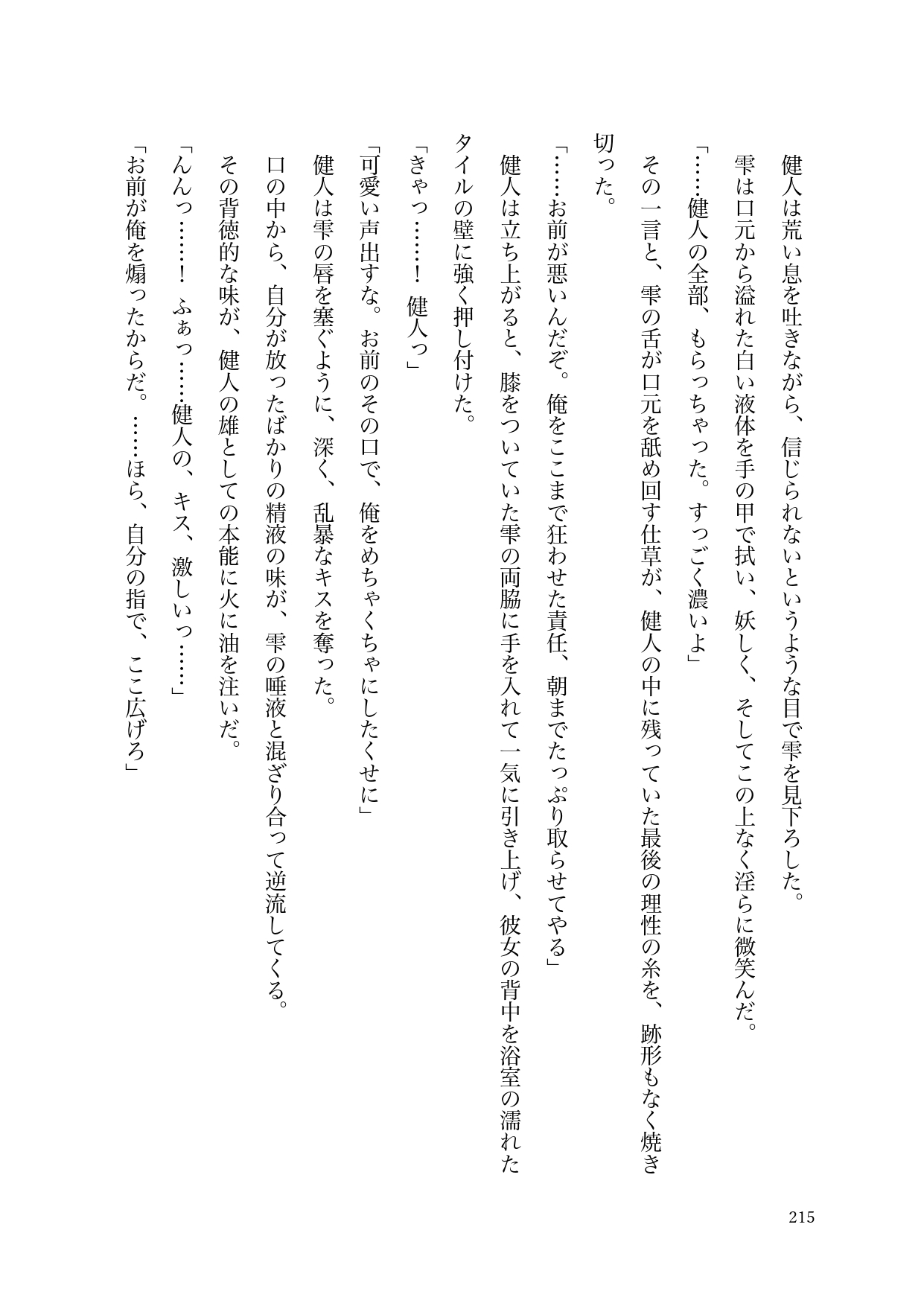 まるで共依存のように、互いの熱を貪り合う二人。誰にも見せられない、誰にも立ち入ることのできない二人だけの濃密な聖域。