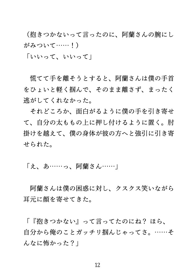 けれど、がら空きのはずの座席で、隣にはイケメンデザイナーの男・入磨(いるま)が座っていた。