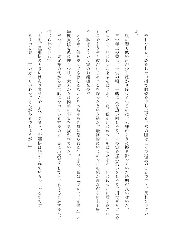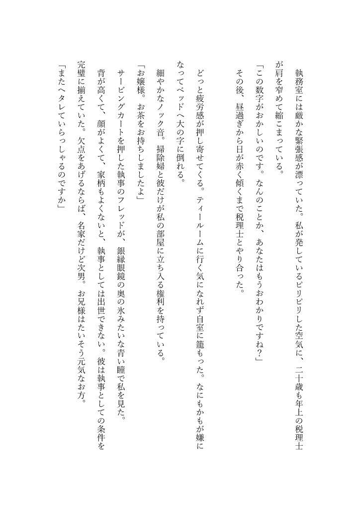 次々と降りかかる問題に疲れ果てた彼女の前にいるのは、幼い頃から共に育ったクールな執事・フレッドだけだった。