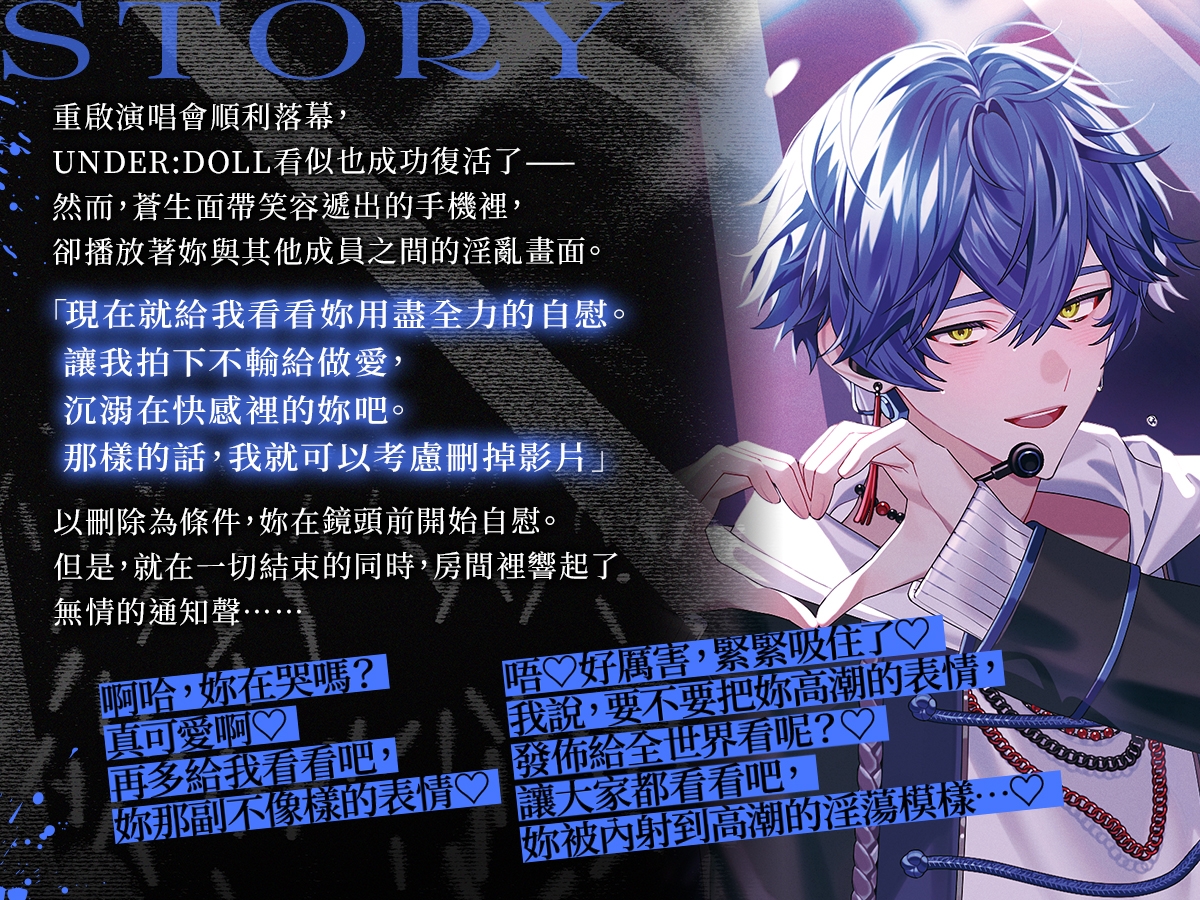 甚至會冒用妳的名字在地下風俗圈工作,行徑早已嚴重脫序。因為不想和妳分開,想把UNDER:DOLL變成永恆的「作品」,他會刻意記錄最羞恥的瞬間,並試圖將其散布出去。
