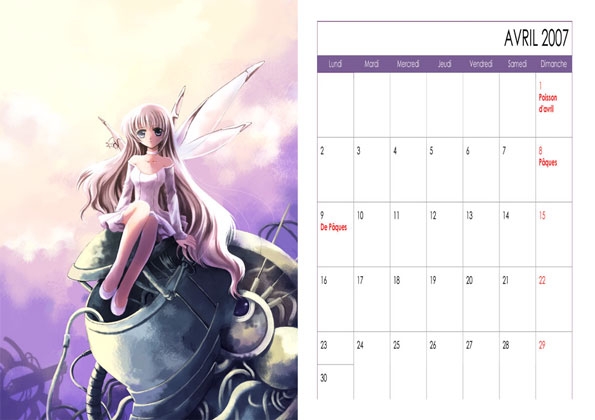 このカレンダーは、イラスト1枚で1ヶ月構成となっております。のちに発表されるAおよびBバージョンからとっておきの絵柄を集めて作りました。計13枚。