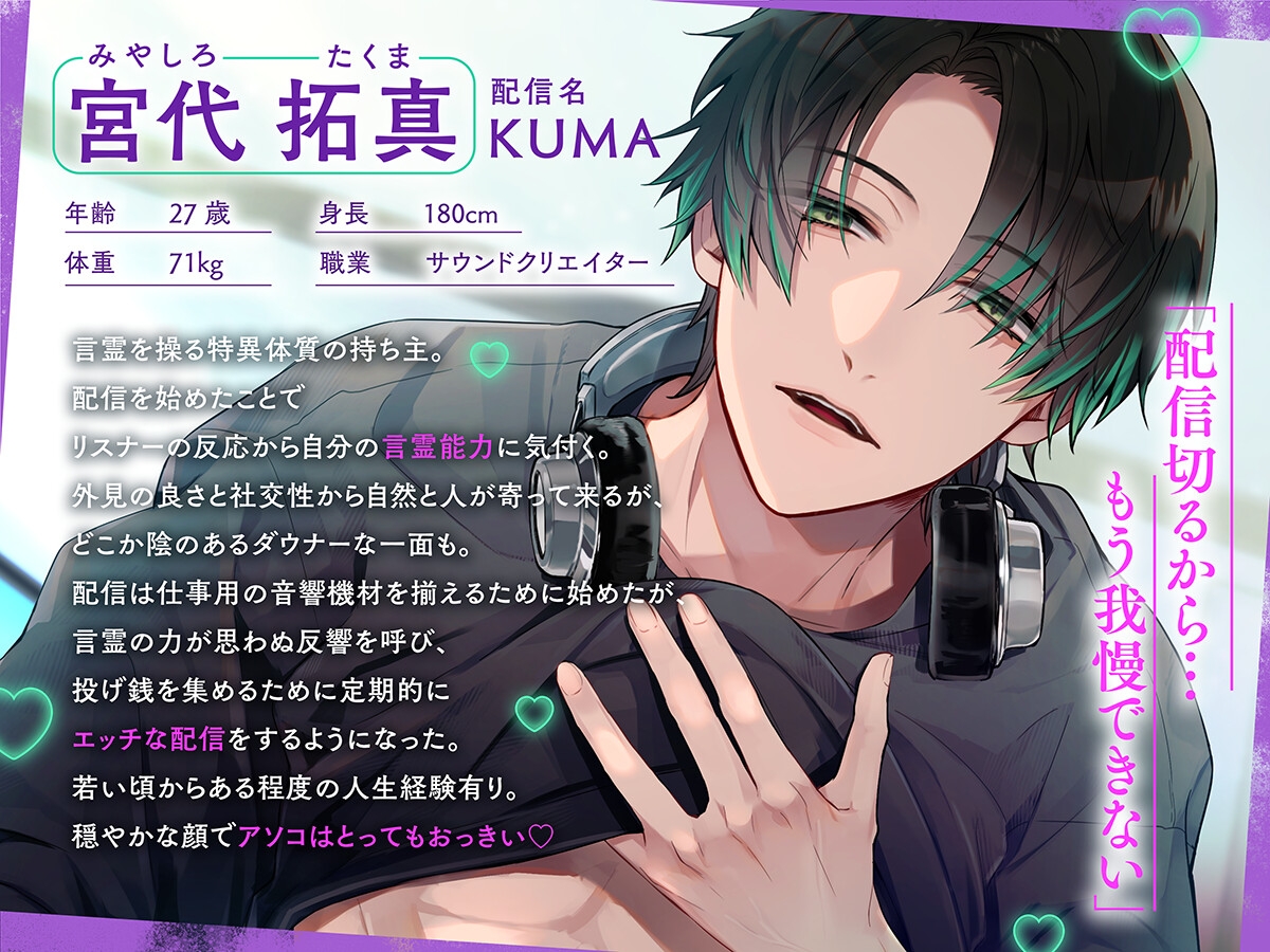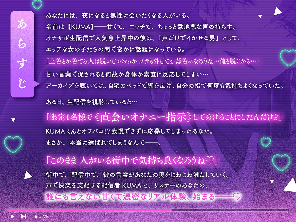 声で快楽を支配する配信者KUMAと、リスナーのあなたの、誰にも言えない甘くて濃密なリアル体験、始まる──♡