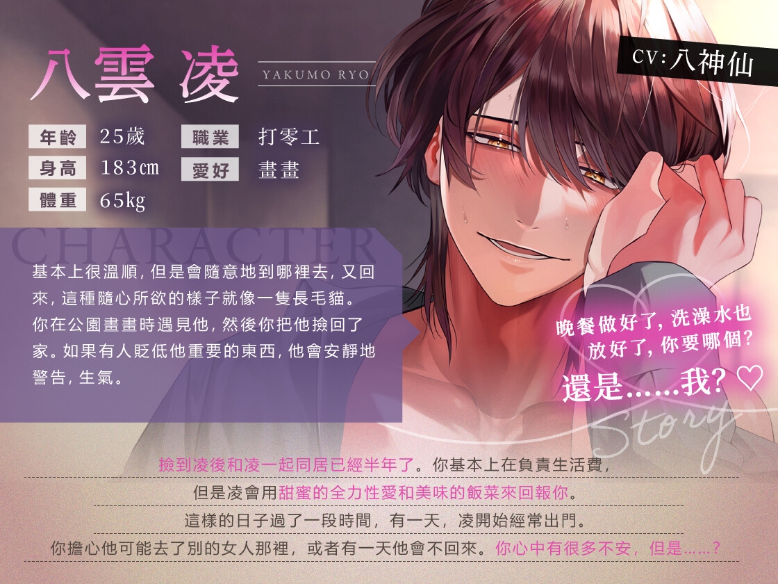 你基本上在負責生活費,但是凌會用甜蜜的全力性愛和美味的飯菜來回報你。