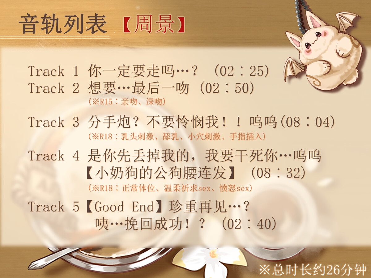 ![【简体中文版】【留恋x恳求】不要离开我:阿芙佳朵的苦甜性爱 (CV.周景)【Good End】 [男色研究所] 【简体中文版】【留恋x恳求】不要离开我:阿芙佳朵的苦甜性爱 (CV.周景)【Good End】 [男色研究所]](http://img.dlsite.jp/modpub/images2/parts/RJ01398000/RJ01397689/0a8c44af14c1e565a807e99bfdde8b1b.jpg)