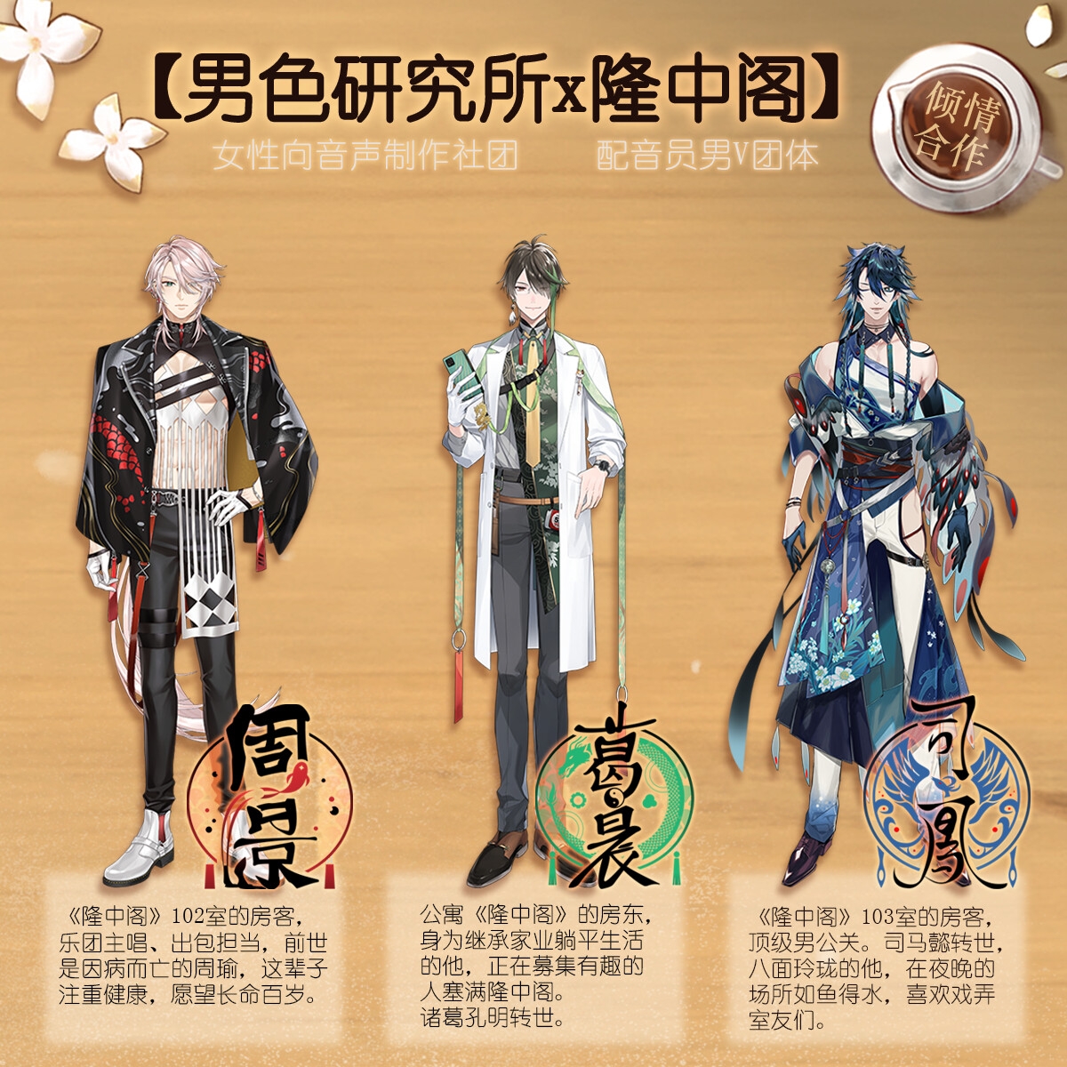 本次社团與「隆中阁」合作,「隆中阁」是由《嗓音不甜也有春天》推出的配音员男V团体