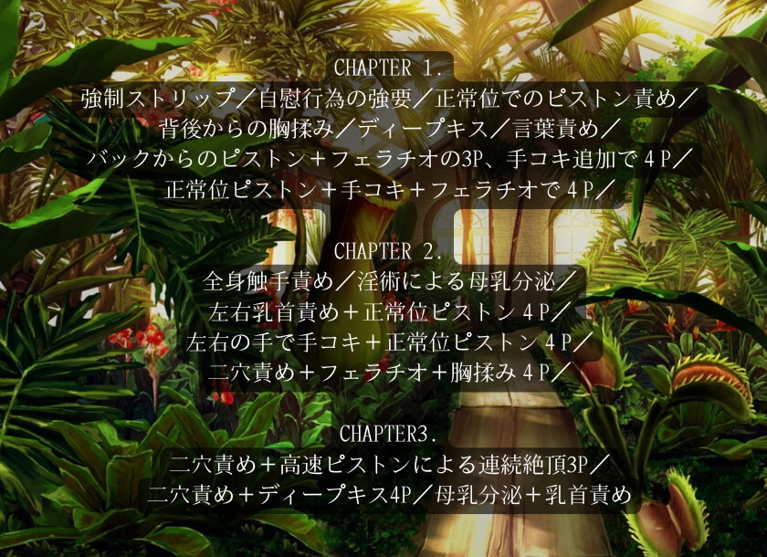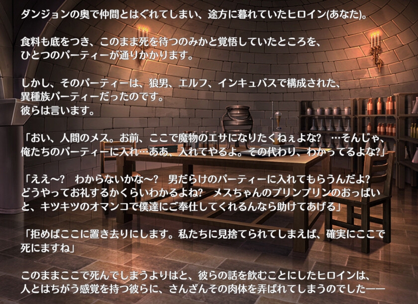![異種姦4P 〜ダンジョンの中で人外パーティーに囚われたメスの受難〜 [Glass Castel] 異種姦4P 〜ダンジョンの中で人外パーティーに囚われたメスの受難〜 [Glass Castel]](http://img.dlsite.jp/modpub/images2/parts/RJ01474000/RJ01473010/35390ac8b1a58d6ce8d7901ac06a930e.jpg)