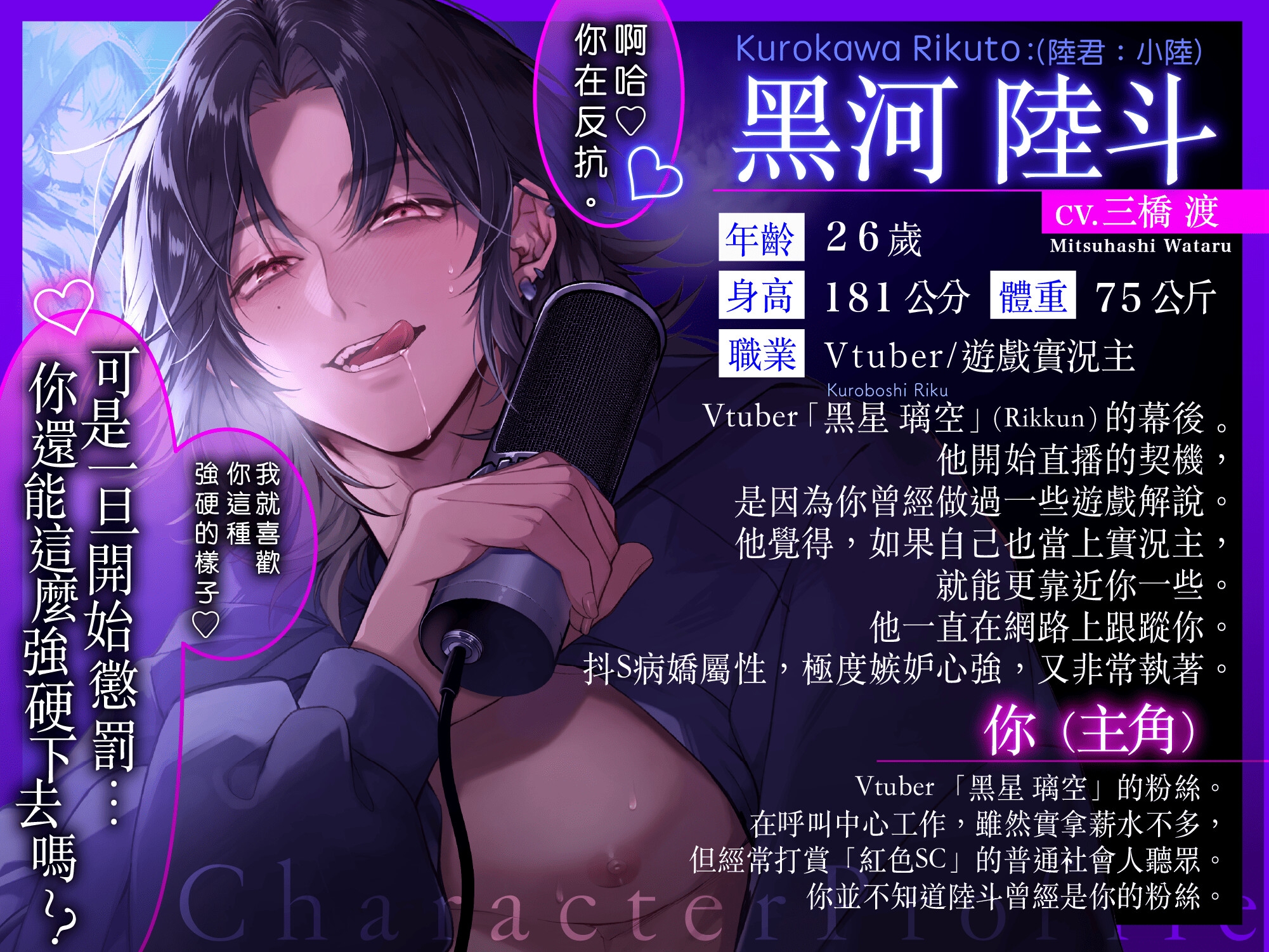 「啊~啊……大家好,晚上好,我是Riku。