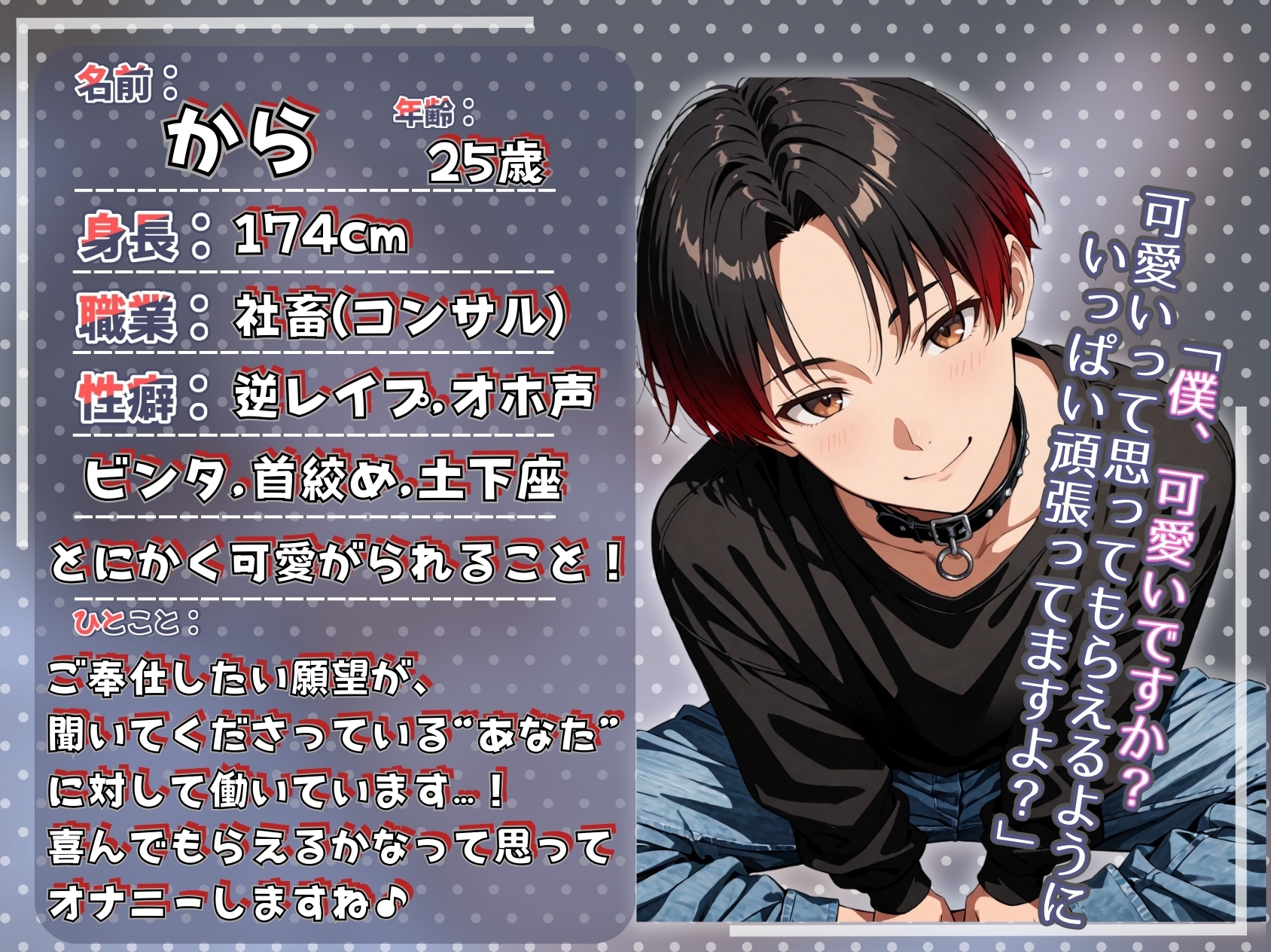 ![《朝勃ちオナニー実録演》優等生いい子ちゃんの裏の顔は、【性癖:逆レ】の変態ドM雑魚オス✨10連寸止め&おちんぽビンタ♡尊厳0の無様な下品オナニー♡〈File.04 から〉 [絶対狂愛エゴイズム] 《朝勃ちオナニー実録演》優等生いい子ちゃんの裏の顔は、【性癖:逆レ】の変態ドM雑魚オス✨10連寸止め&おちんぽビンタ♡尊厳0の無様な下品オナニー♡〈File.04 から〉 [絶対狂愛エゴイズム]](http://img.dlsite.jp/modpub/images2/parts/RJ01518000/RJ01517762/ca8a0a4fe42e6c365e9f469b539a0865.jpg)