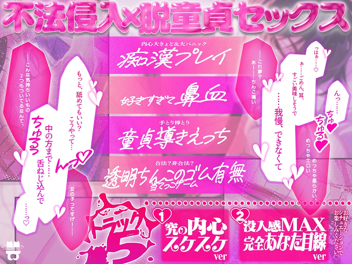 【収録内容:睡眠○、クンニ、クリ責め、手マン、潮吹き、キス、耳舐め、透明ちんこで丸見え挿入(正常位)、膣内と乳首同時責め、喘ぎ聴かせ、恋人繋ぎセックス、ディープキス、透明ちんこのゴム有無当てっこゲーム、挿入(松葉崩し)、性器で子宮にキス】