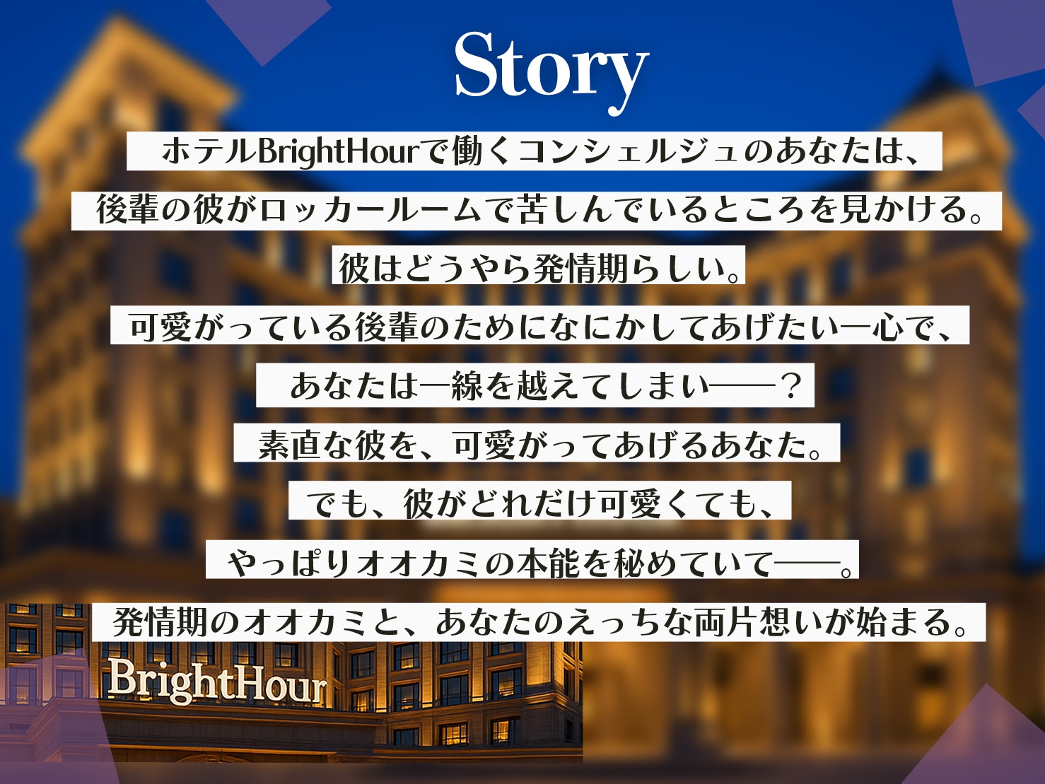 ホテルBrightHourで働くコンシェルジュのあなたは、後輩の彼が