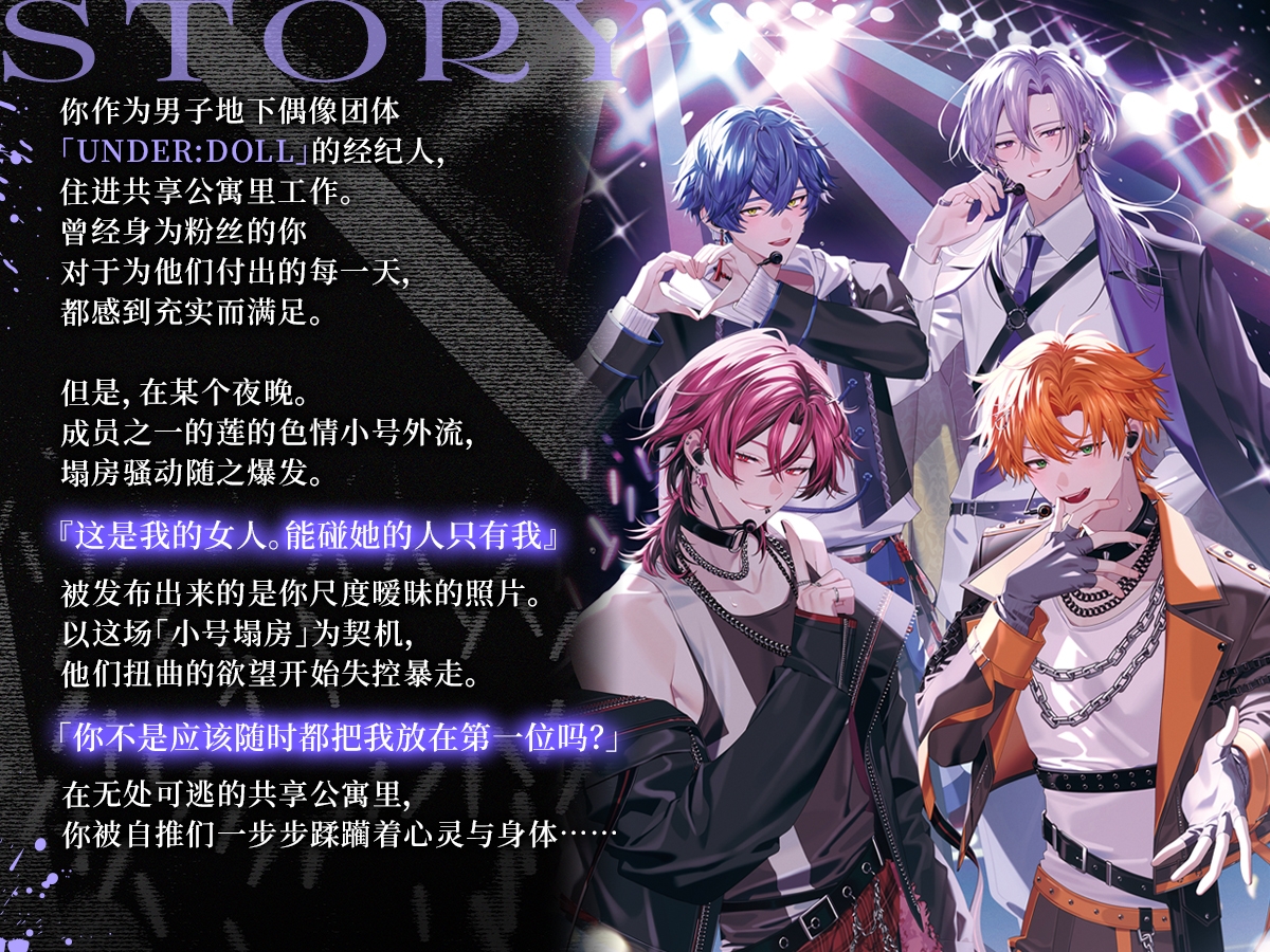 你作为男子地下偶像团体「UNDER:DOLL」的经纪人,住进共享公寓里工作。