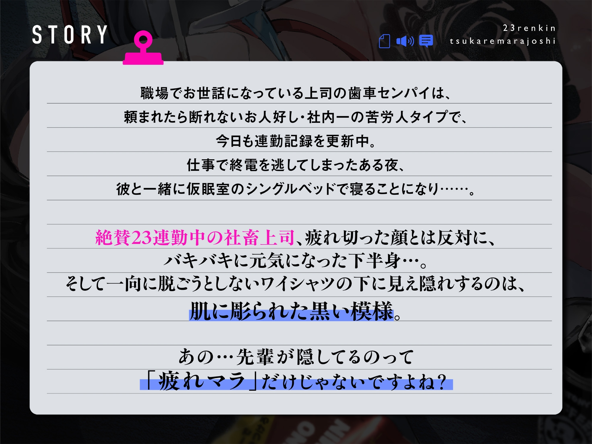 ![「俺、尽くすよ。好きな子には…」いつも愚息が大変お世話になっております。【23連勤・疲れマラ上司】#甘やかし包容力えっち▶︎#独占欲わからせ抱きつぶし [くりーみぃめんず] 「俺、尽くすよ。好きな子には…」いつも愚息が大変お世話になっております。【23連勤・疲れマラ上司】#甘やかし包容力えっち▶︎#独占欲わからせ抱きつぶし [くりーみぃめんず]](http://img.dlsite.jp/modpub/images2/parts/RJ01571000/RJ01570924/6e017e8b9e555c94e9f1511931893680.jpg)