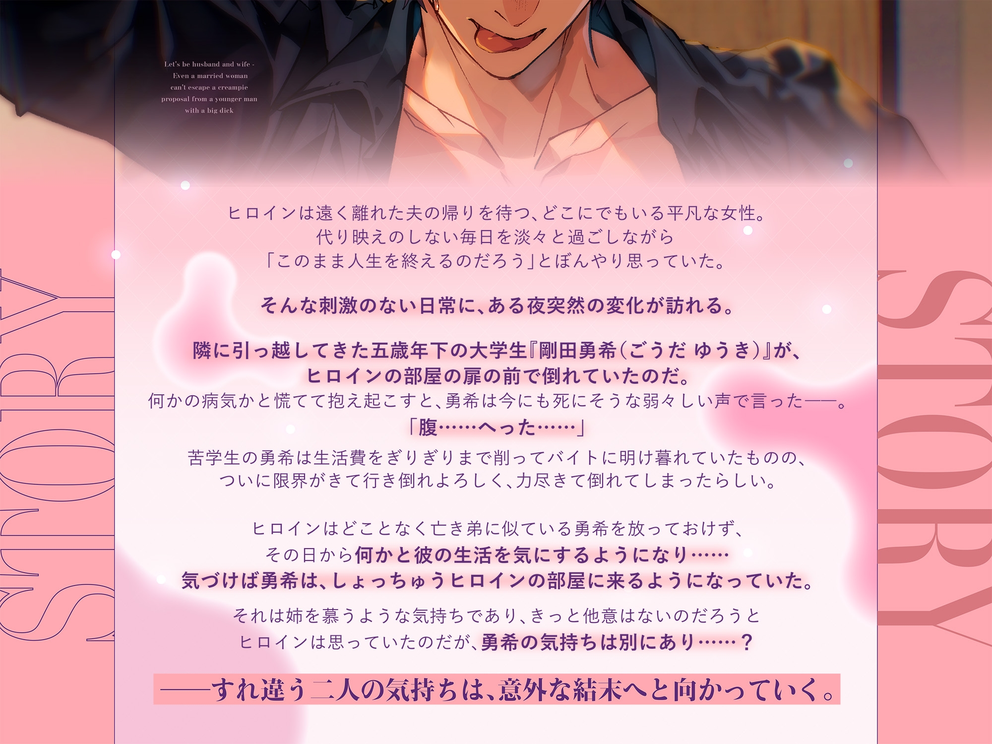 ヒロインが人妻だとわかっているため、二年近く想いを伝えずにいたが……。