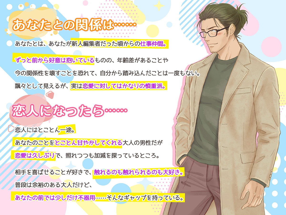 仕事の予定をキャンセルされ困っていた亨を助けたあなたは、「お礼に」と亨に食事に誘われる。