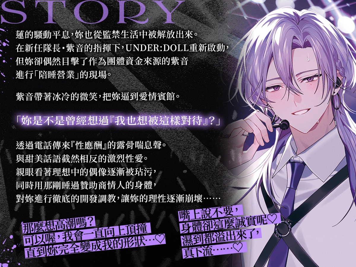 在新任隊長・紫音的指揮下,UNDER:DOLL重新啟動,但妳卻偶然目擊了作為團體資金來源的紫音進行「陪睡營業」的現場。