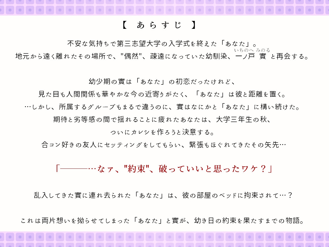 これは両片想いを拗らせてしまった「あなた」と實が、幼き日の約束を果たすまでの物語。