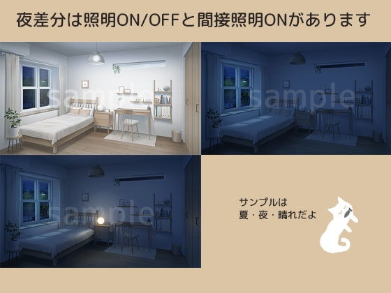 時間:朝・昼・夕・夜(照明ON/OFF・間接照明のみON)