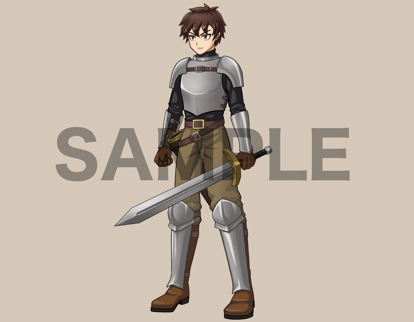 ゲームや動画などで使える立ち絵素材、騎士になった村の青年、剣を装備した軽装鎧の男、C07
