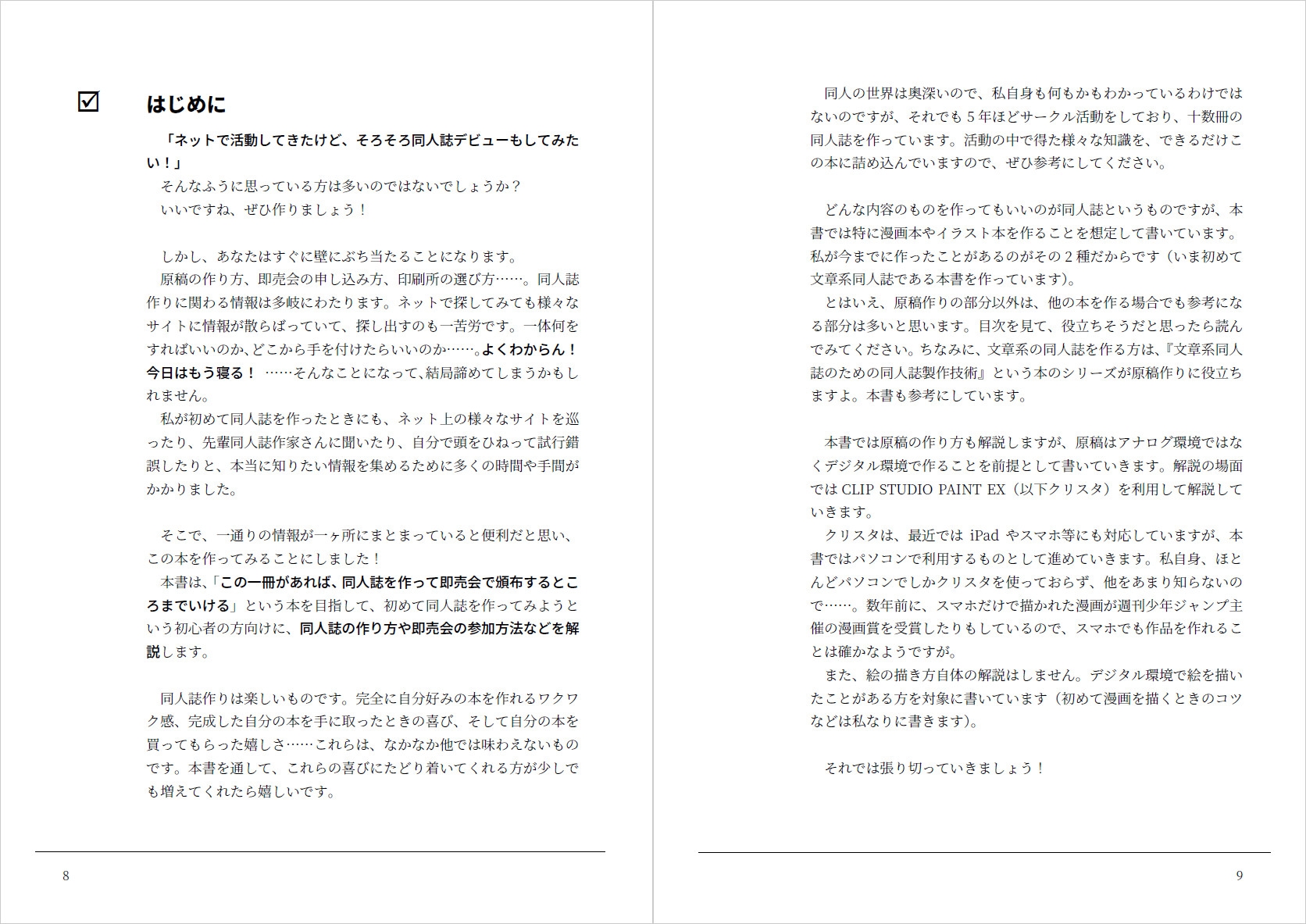 ・本書は、漫画やイラストの同人誌を作ることを想定しています。