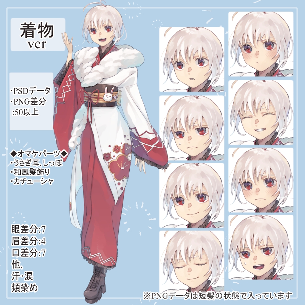 厳選した表情差分PNG・8個のおまけファイルも同梱