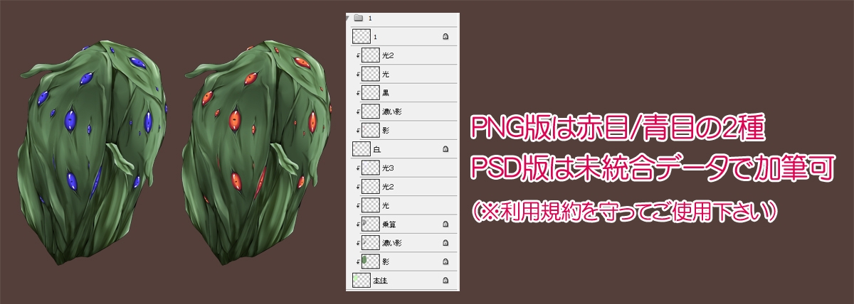 PNG版は赤目/青目の2パターンを収録。