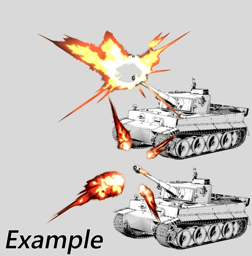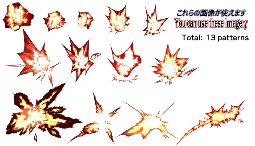 銃・マシンガン・大砲などの発砲エフェクトが13パターン入っています。