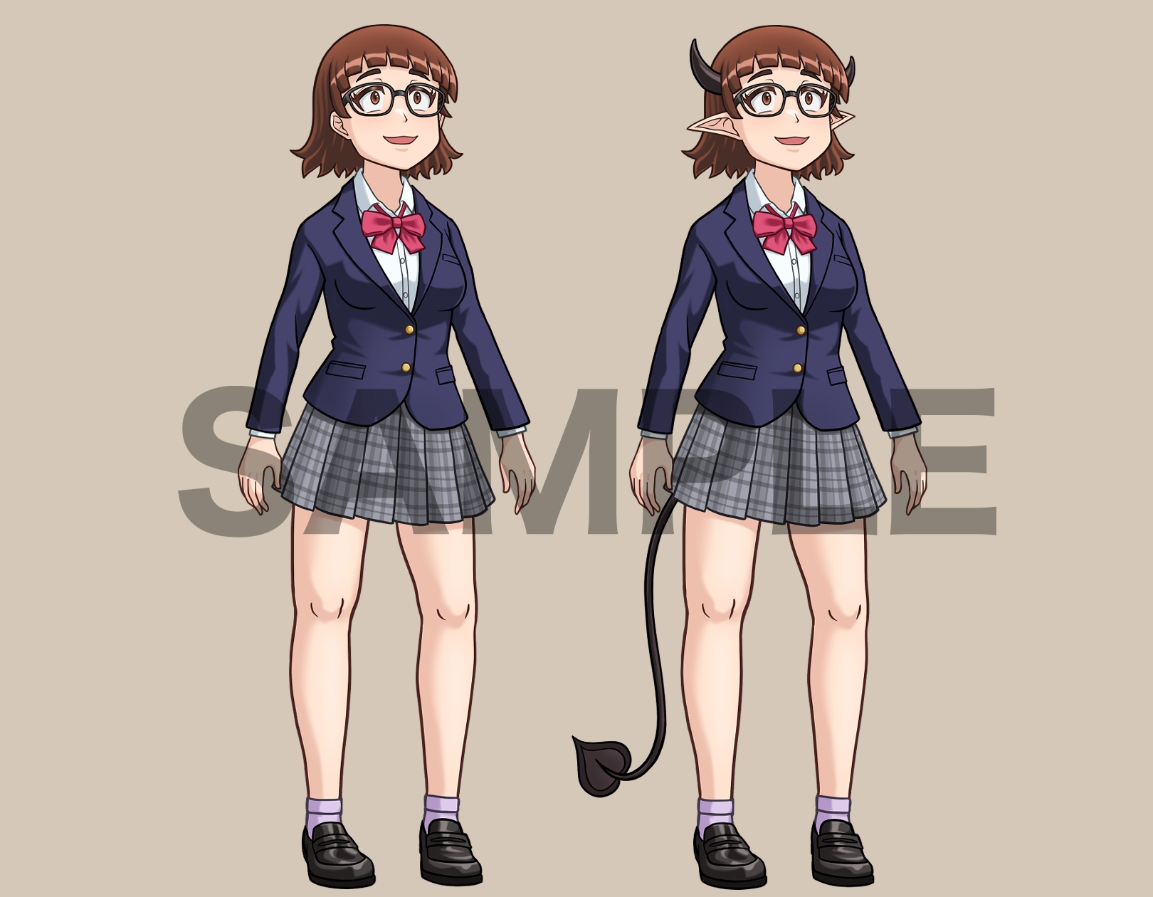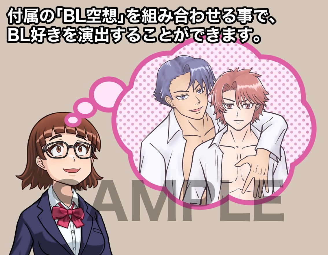 ゲーム、動画、TRPGなど自由に使える立ち絵素材、BL好きのメガネ女子高生、サキュバスバージョン付き、C22