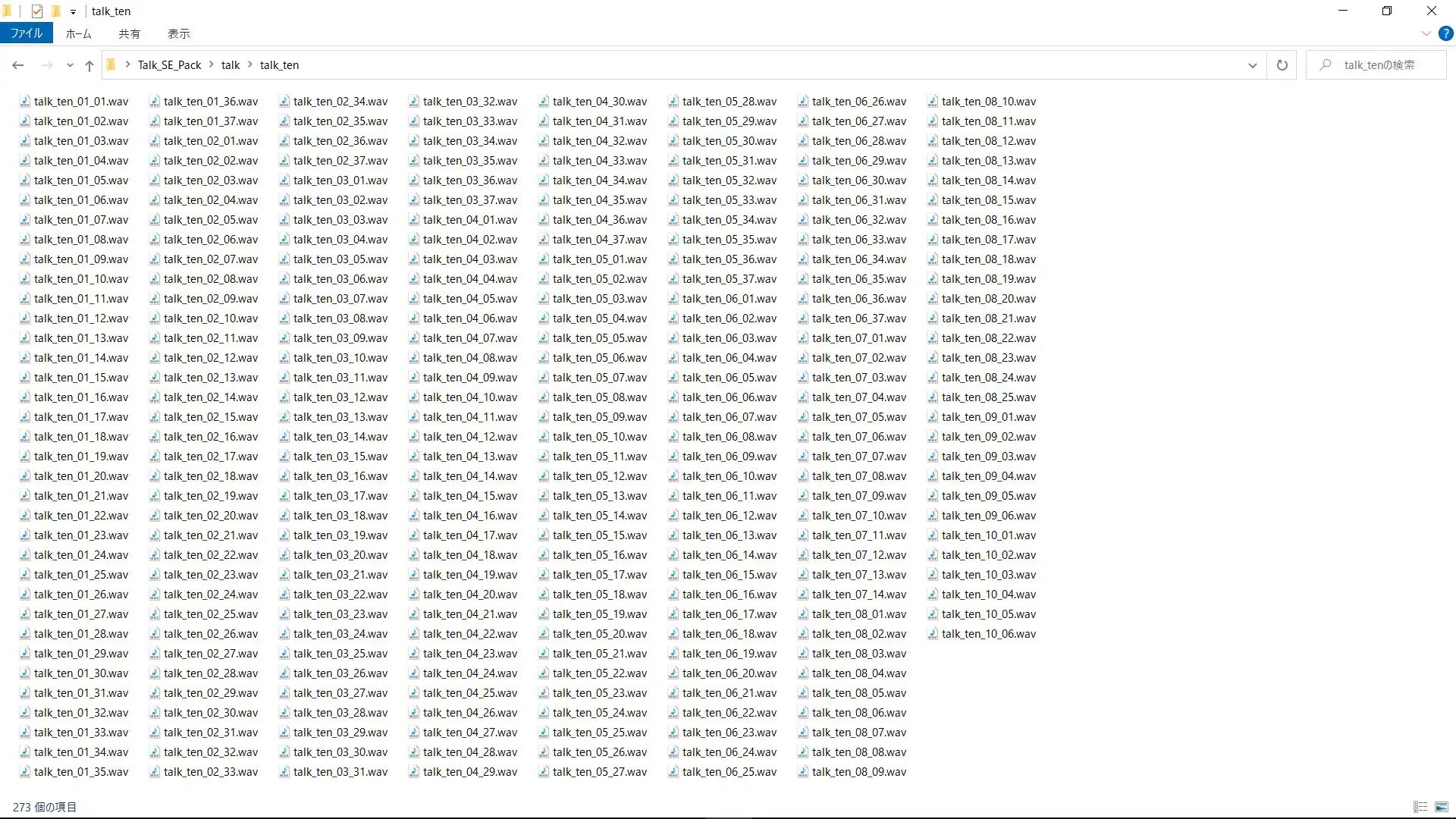 ・talk_ten : 会話音_10連続 : 273音 :「talk_single」の10連続の音が入っております。
