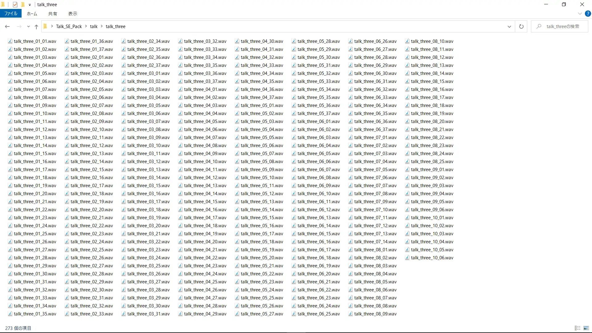 ・talk_three : 会話音_3連続 : 273音 :「talk_single」の3連続の音が入っております。