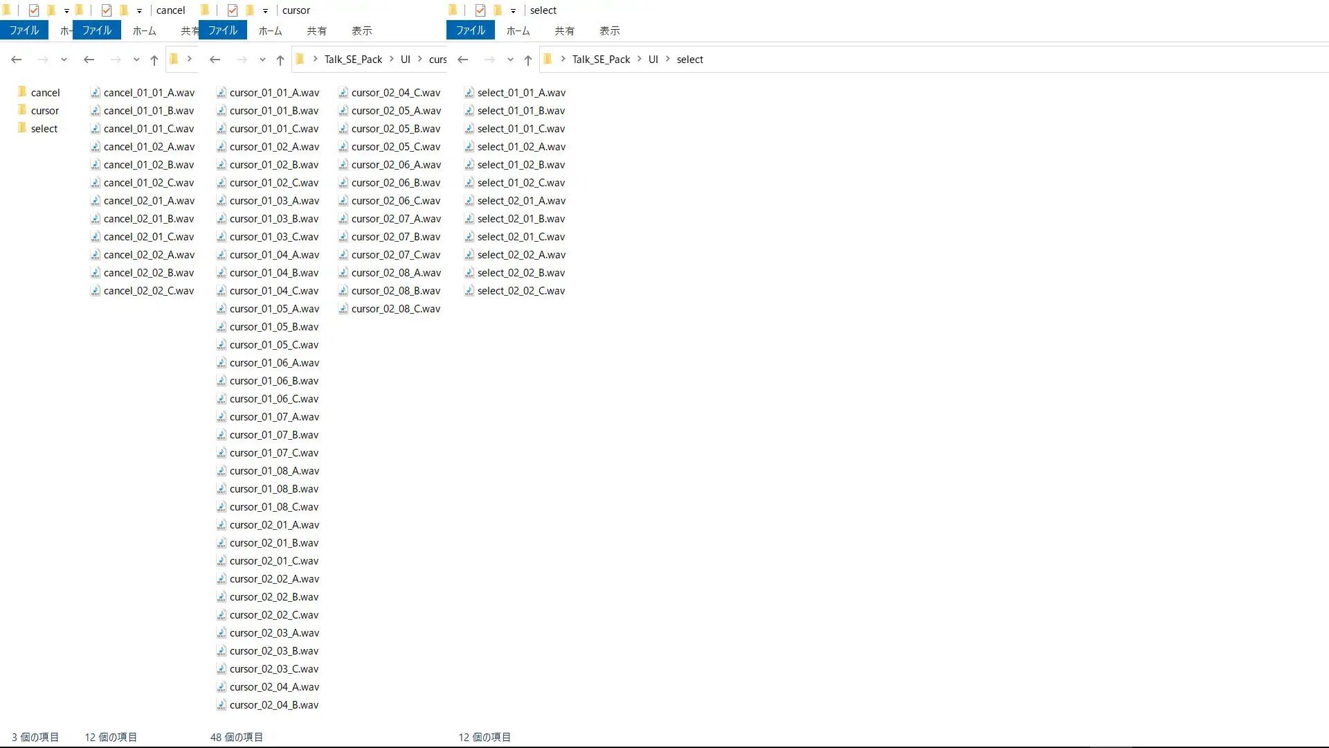 ・cursor : カーソル音 : 48音 : 2種類のカーソル音が入っております。