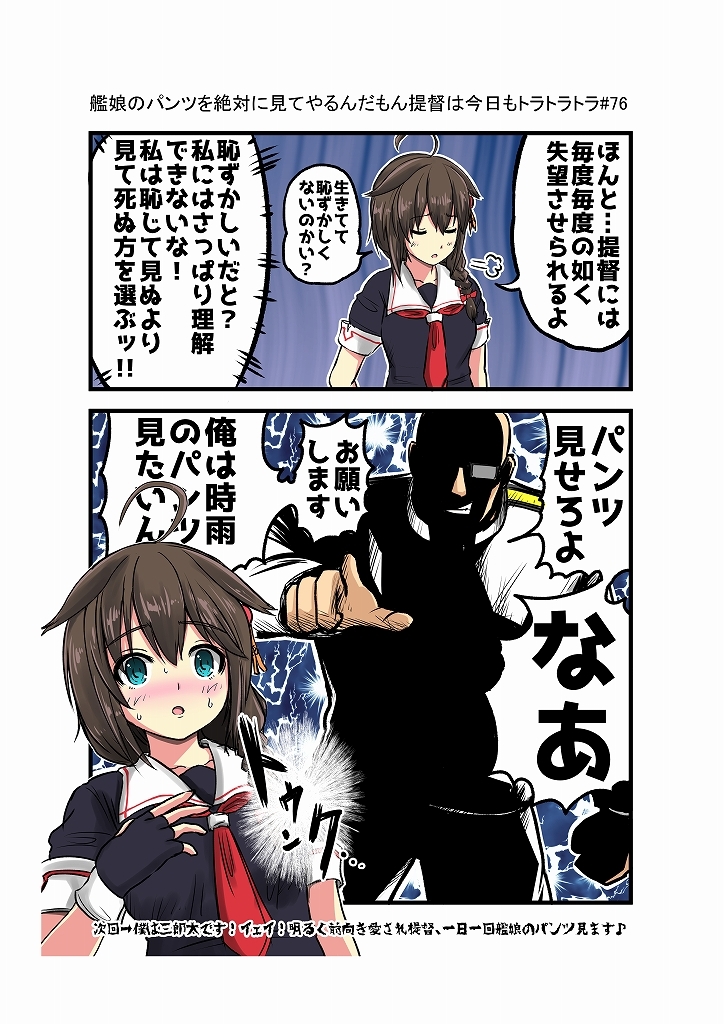 あの手この手の手腕を用いてでも絶対に艦娘のパンツを見たい提督とそんな提督に絶対にパンツを見られたくないと奮戦する艦娘達との果てしなき戦いを綴ったギャグ物語のまとめ録。