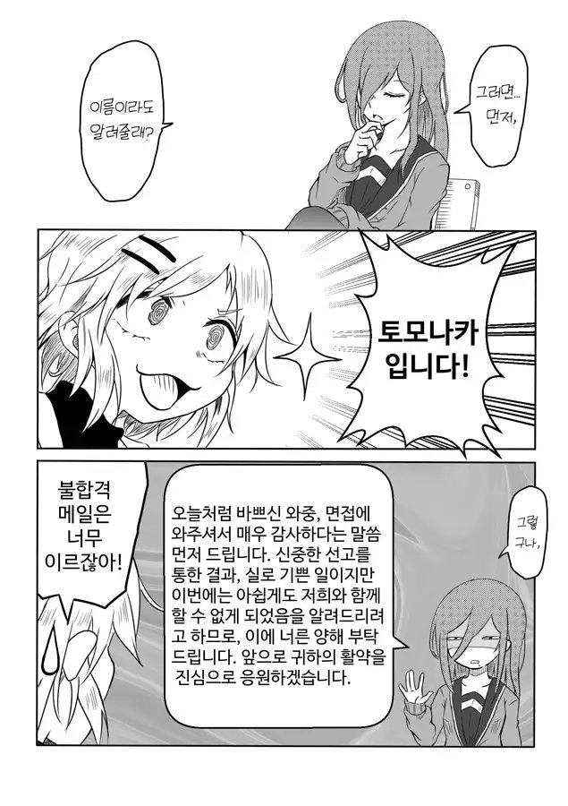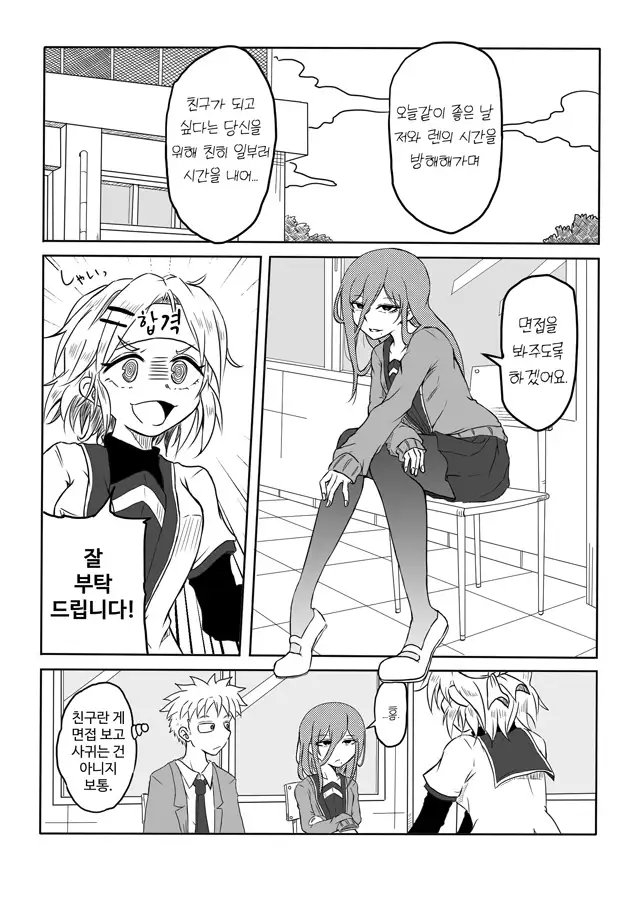 She announces her desire to become friends, and thus an interview begins...