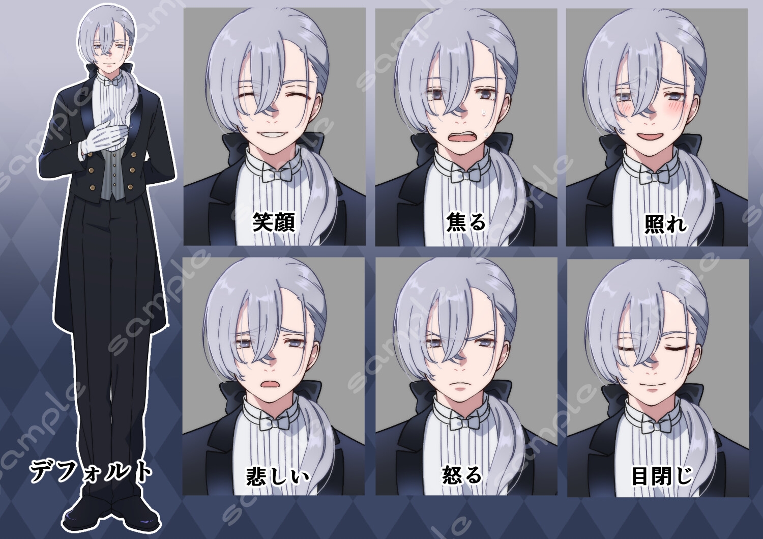 銀髪執事全身立ち絵素材です。