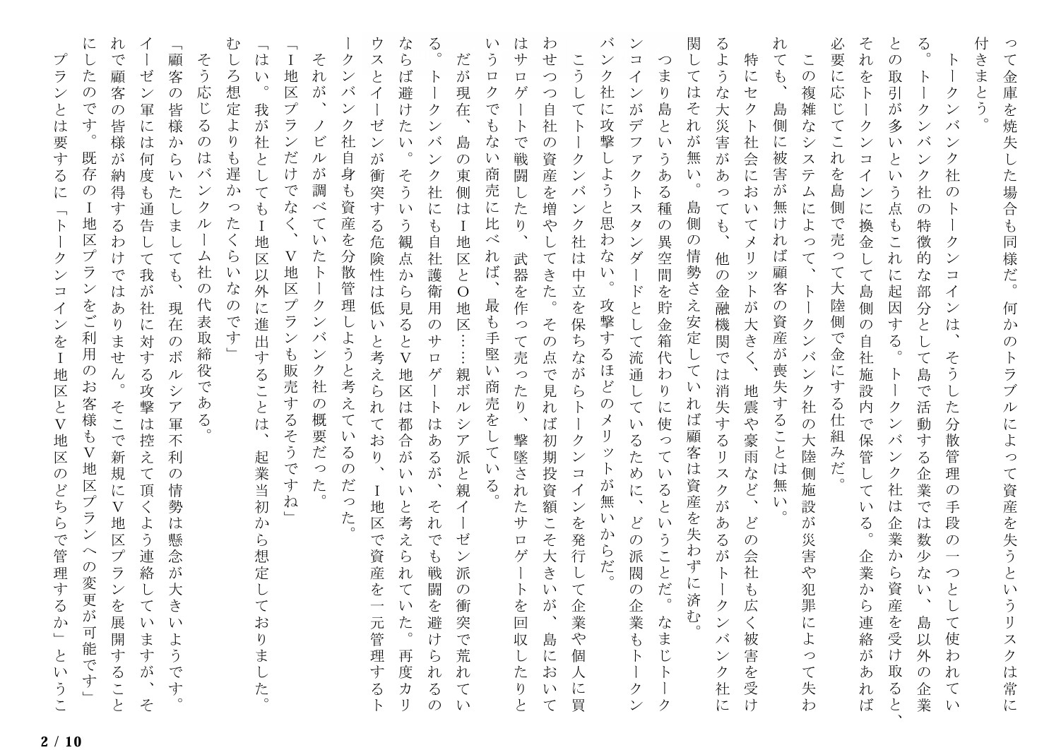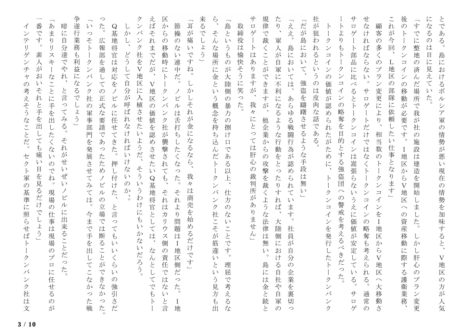 ノビル二佐にQ基地将官から依頼があった。それはV地区への参加を表明したトークンバンク社の対応だった。