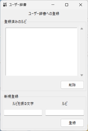 ・ユーザー辞書:ユーザーがルビを登録できます。