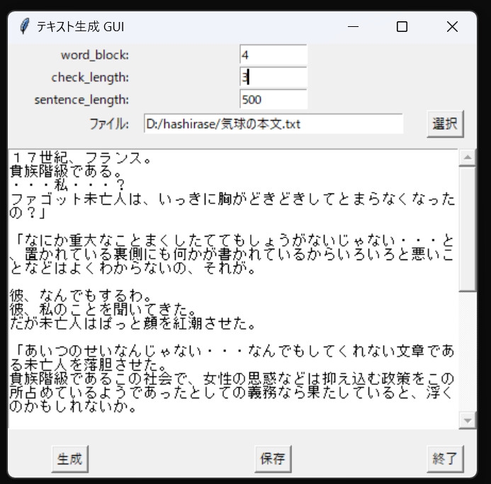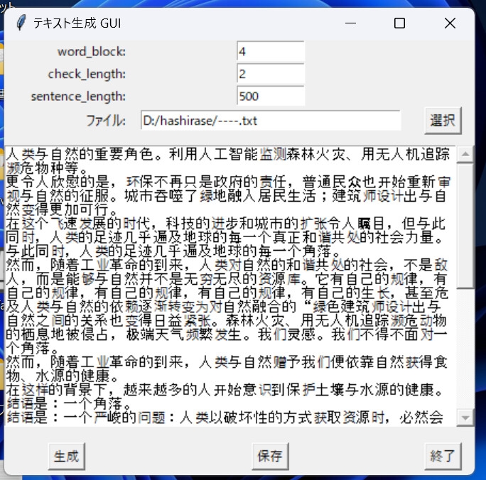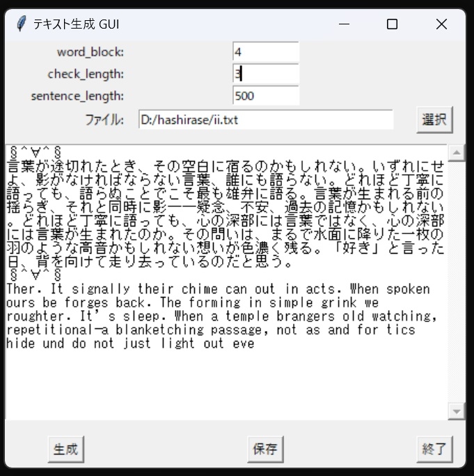 文字の長さの目安です。しかし(word_blockーcheck_length)* sentence_length くらいの長さの文字が実際には出る可能性が高いです。